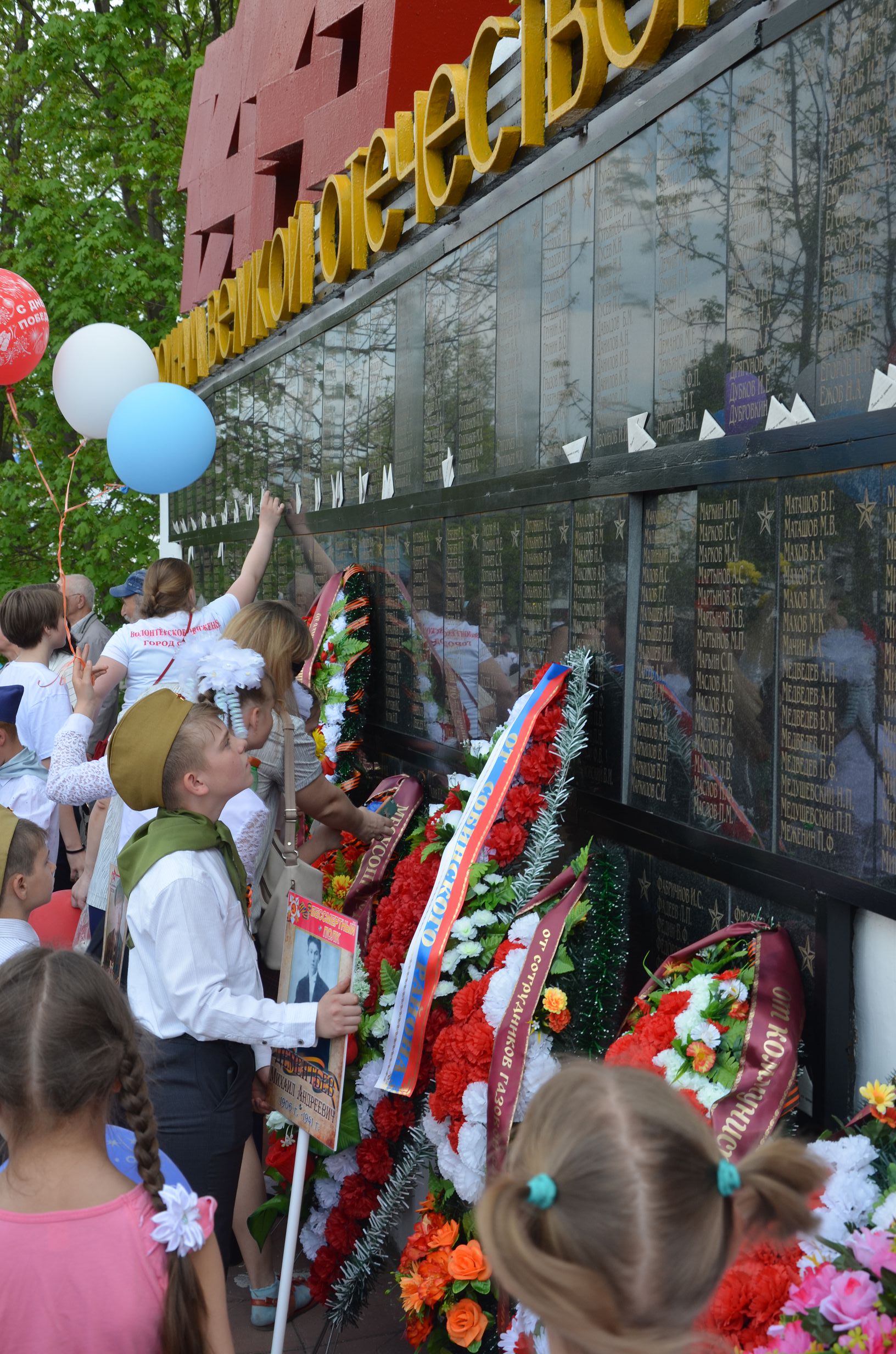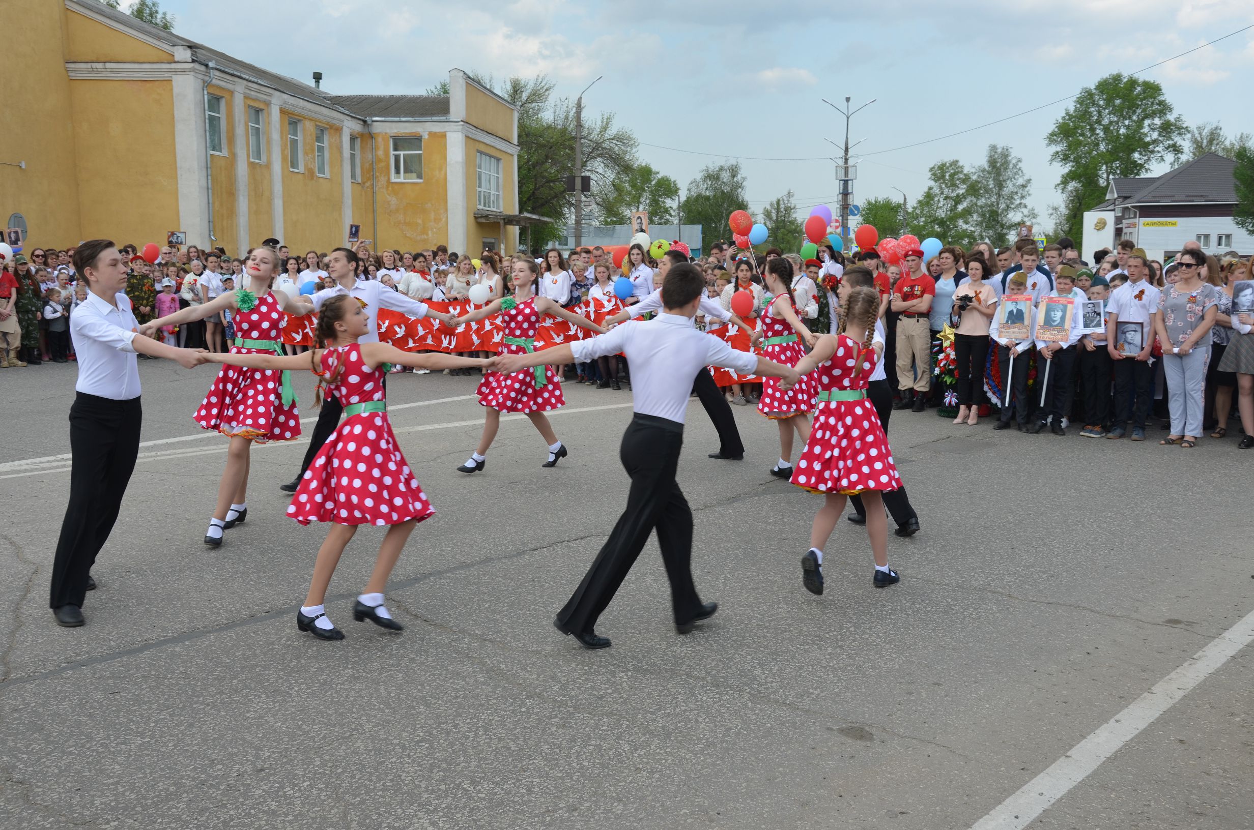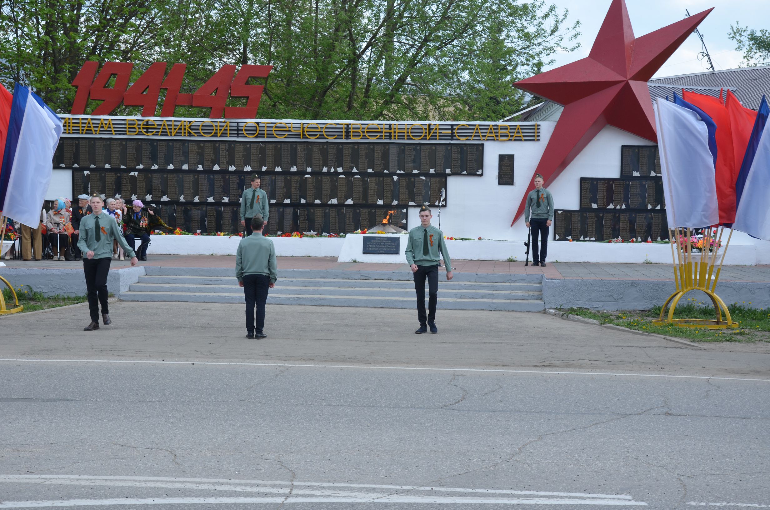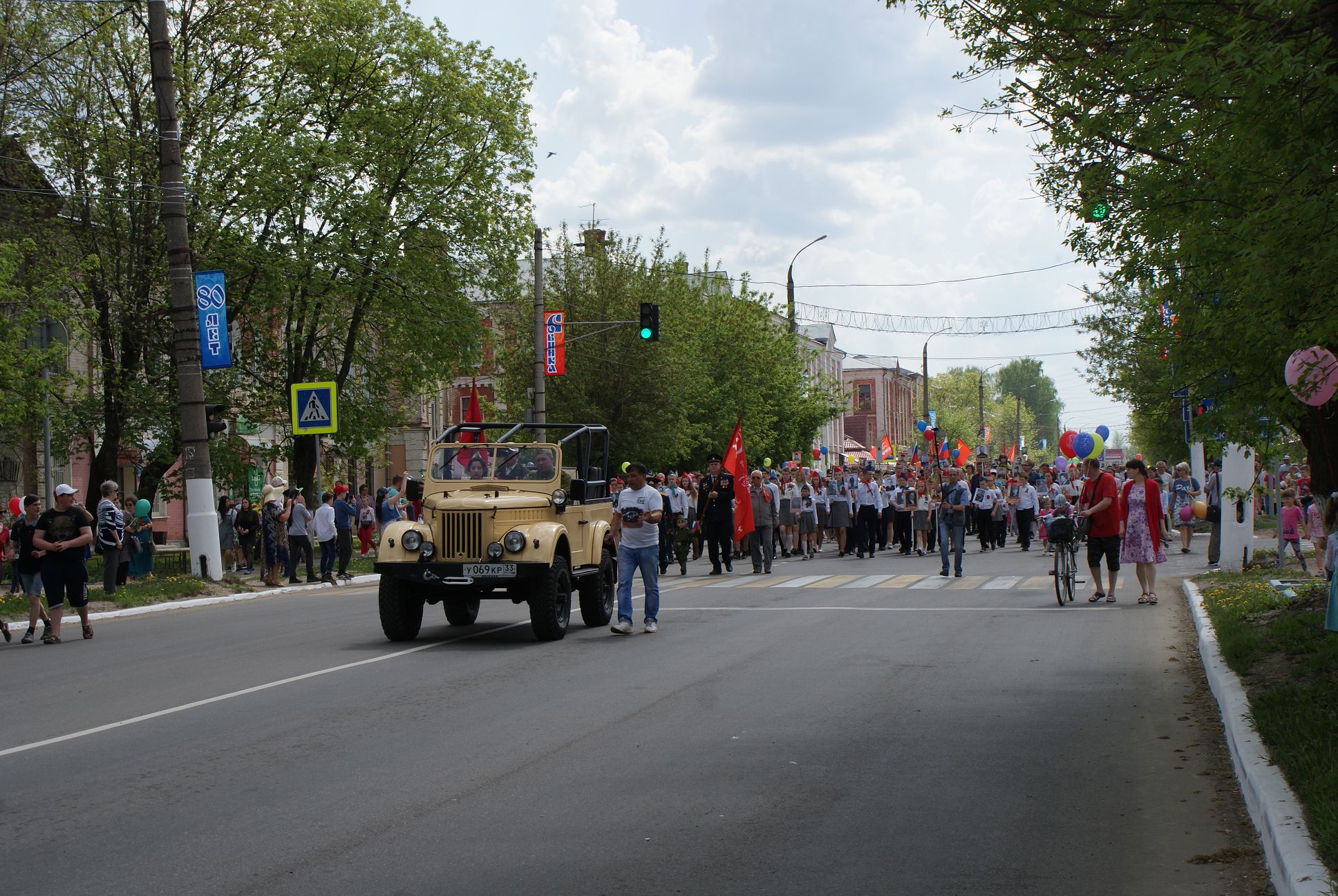 Во время завершения трансляции главного Парада страны в нашем городе началось построение для проведения торжественного шествия, которое по традиции завершается митингом у мемориала погибшим воинам. Колонна собинцев во главе с ветеранами и детьми двинулась по главной дороге. Играл оркестр. Чувства праздника не передать словами: гордость за воинов – победителей, за нацию переполняли каждого.