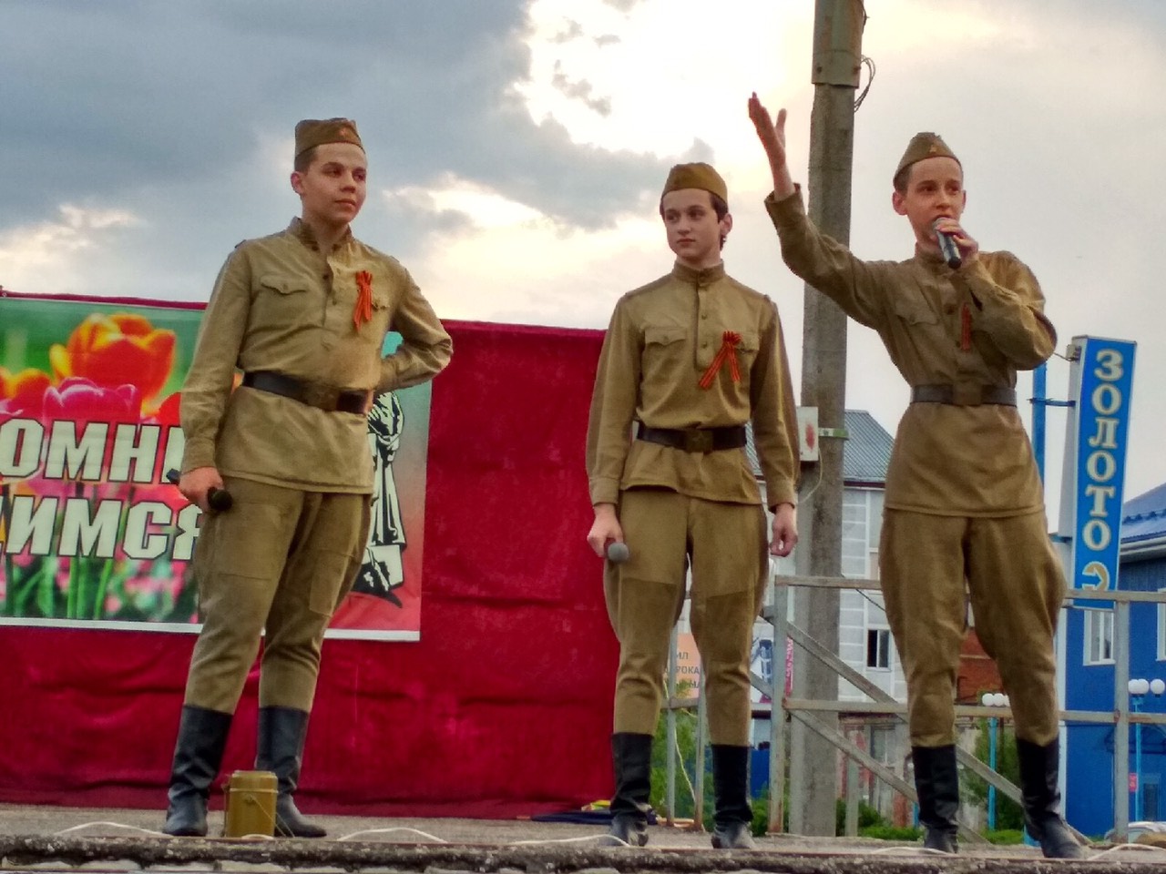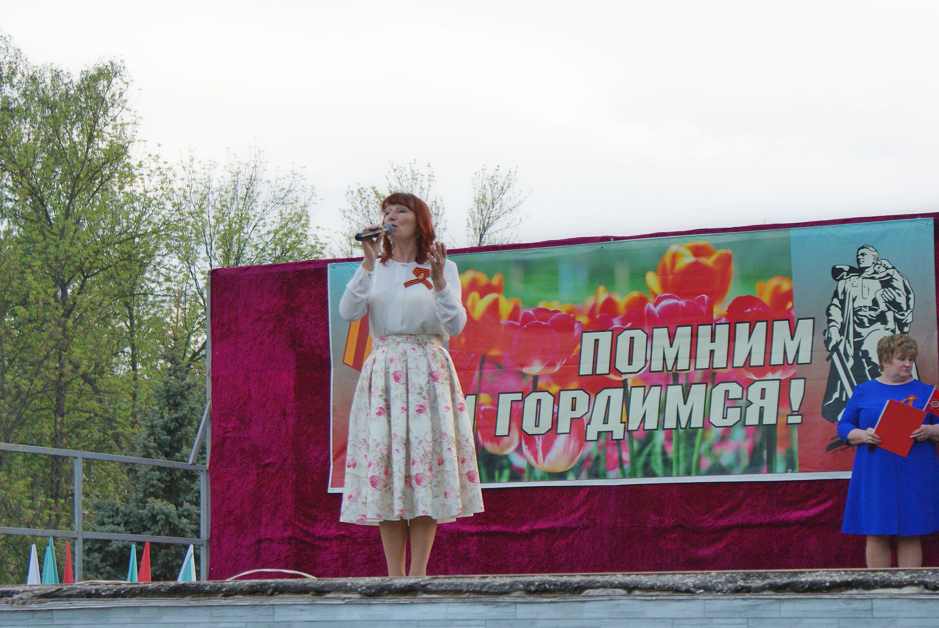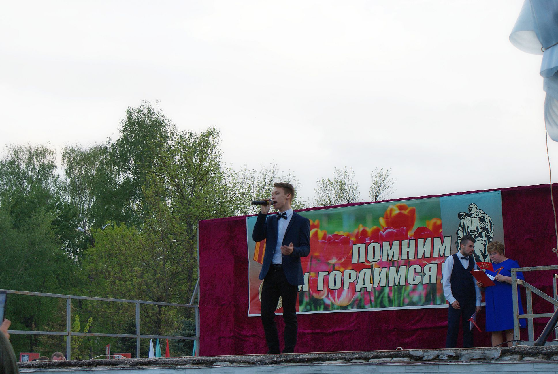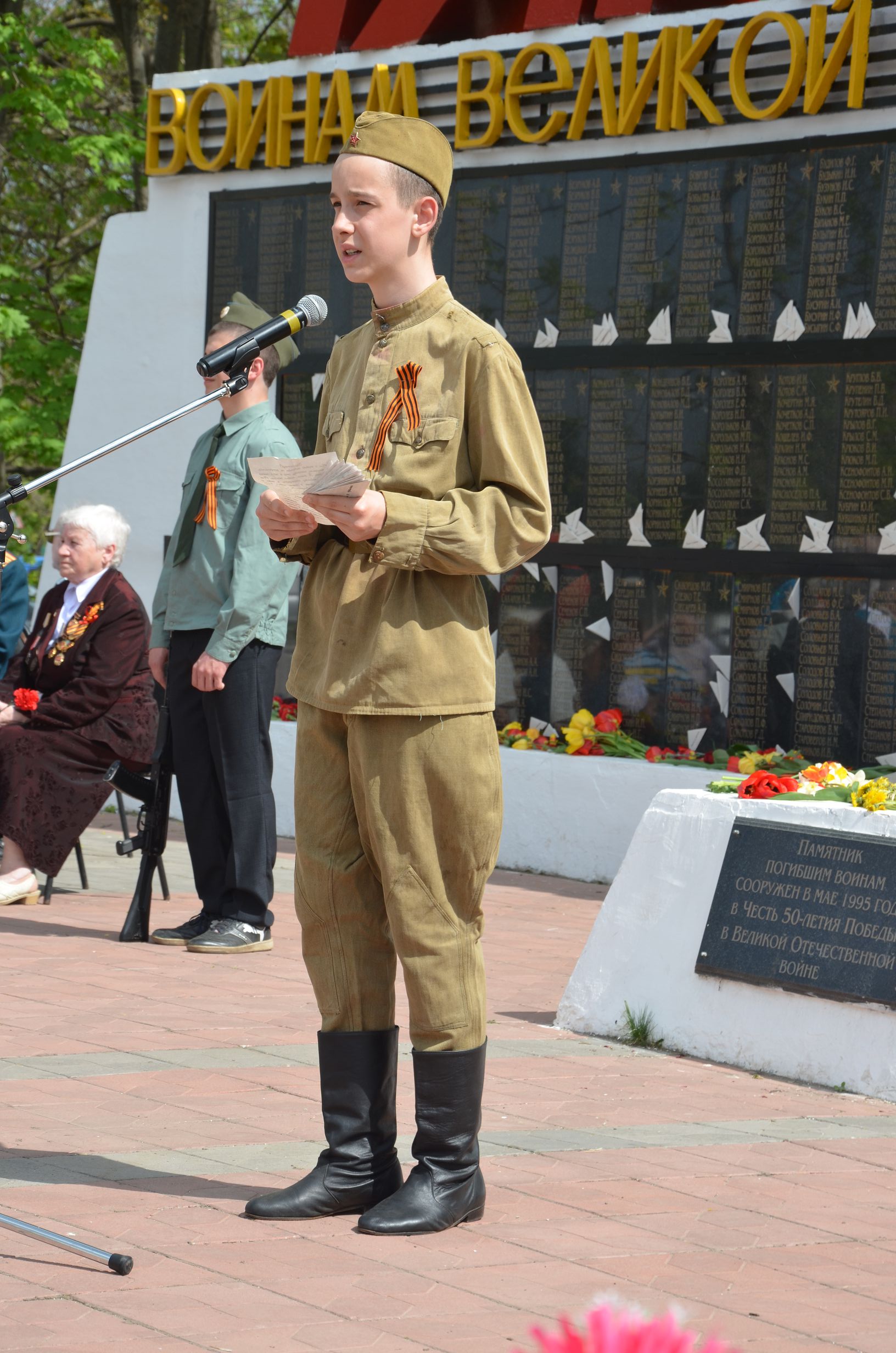 Начался митинг. Приветствовала всех Елена Геннадьевна Карпова, которая поклонилась ветеранам, пожелала всем жителям мирного неба и крепкого здоровья. Среди выступающих были и глава администрации Собинского района Александр Всеволодович Разов, глава Собинского района Олег Валерьевич Лавров, председатель Совета ветеранов города Собинки Тамара Сергеевна Тарасова, председатель Совета депутатов Надежда Анатольевна Ермолаева, благочинный приходов Собинского округа Владимирской епархии, Протоиерей Виктор Тарасов. Военный вальс был исполнен участника «народного» ансамбля бального танца «Эврика».