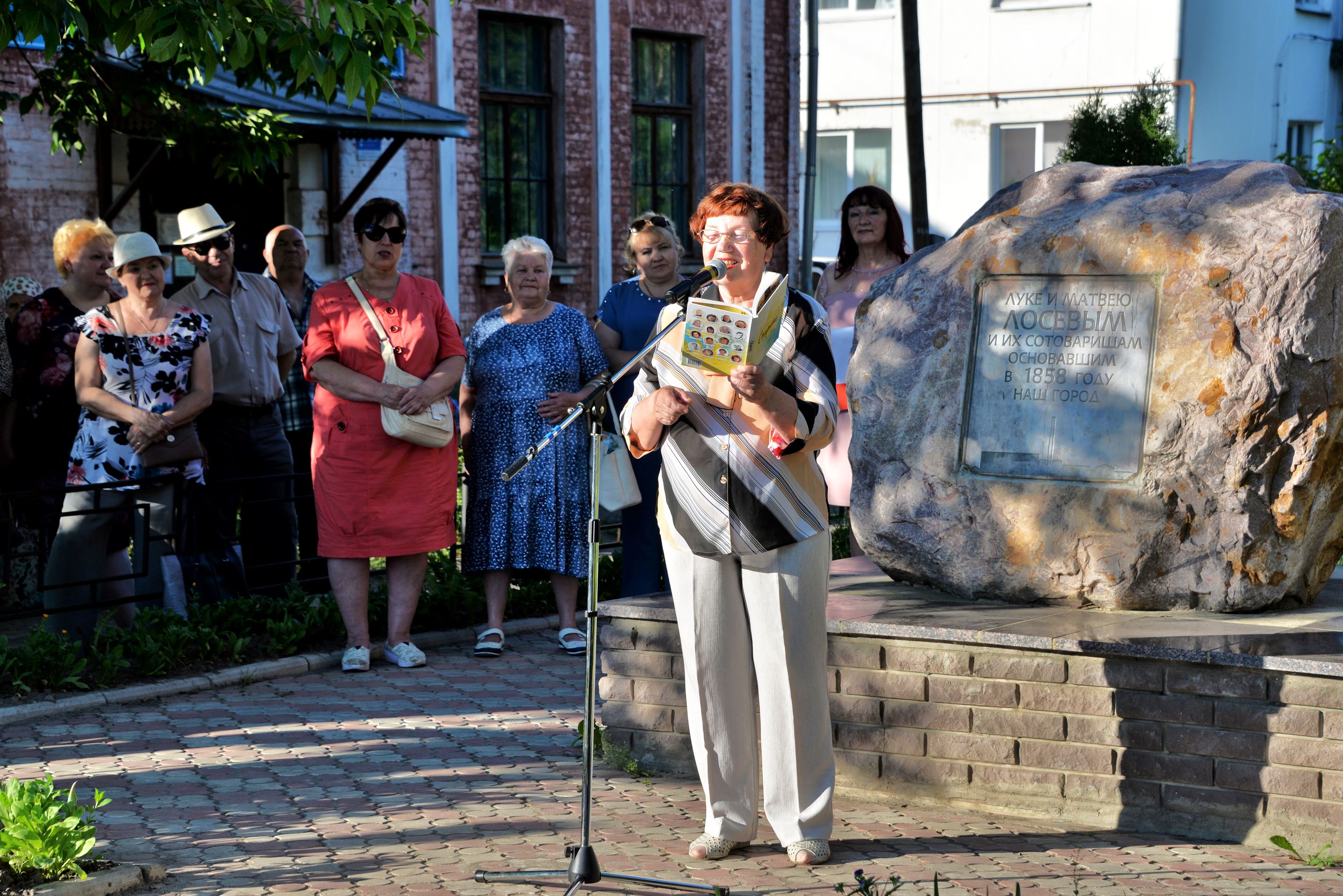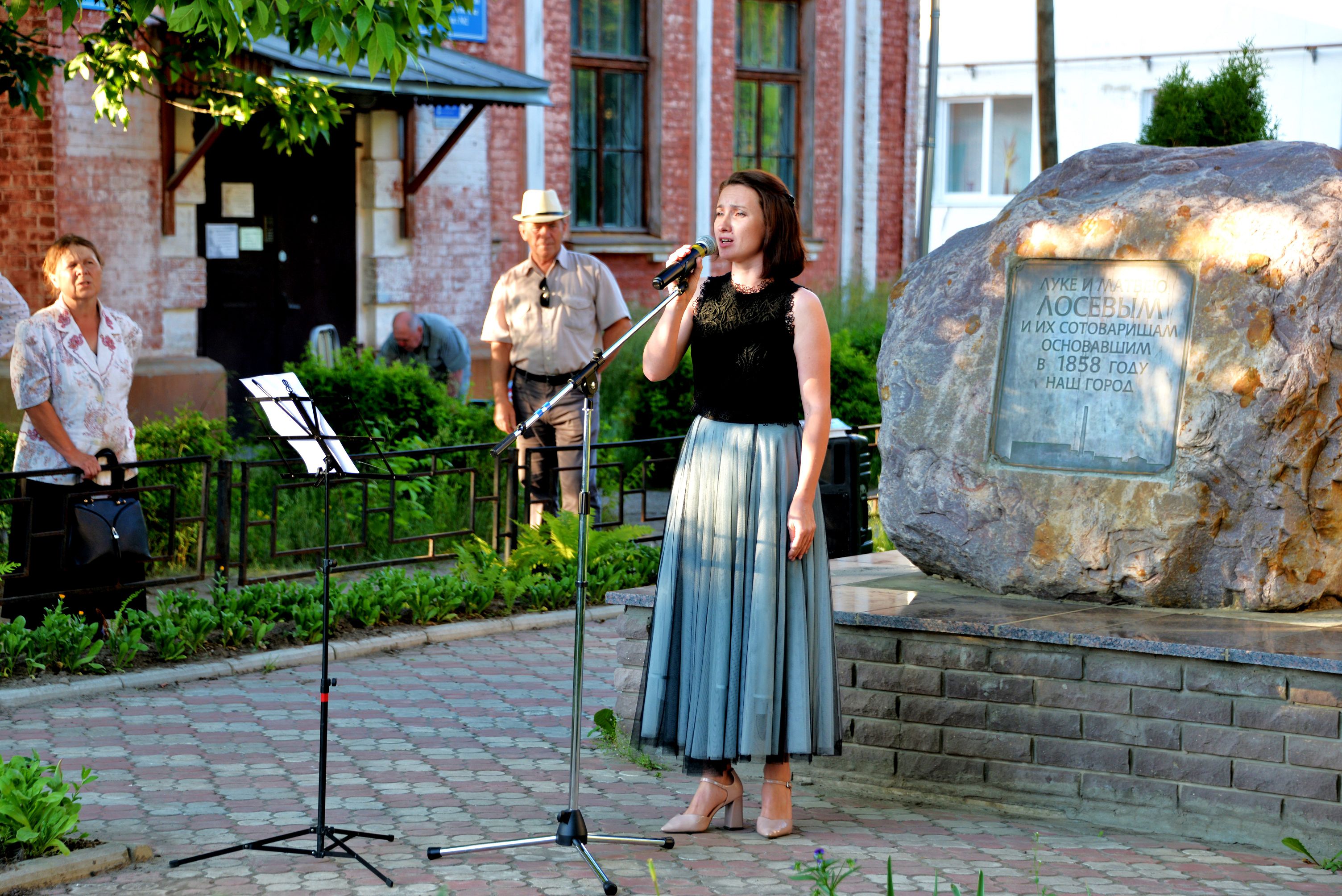 В необыкновенной обстановке, под открытым небом собрались поэты, художники, чтецы, певцы, артисты, все, кому не безразлична культура нашего города. Место встречи - у камня братьям Лосевым, основателям нашего города.