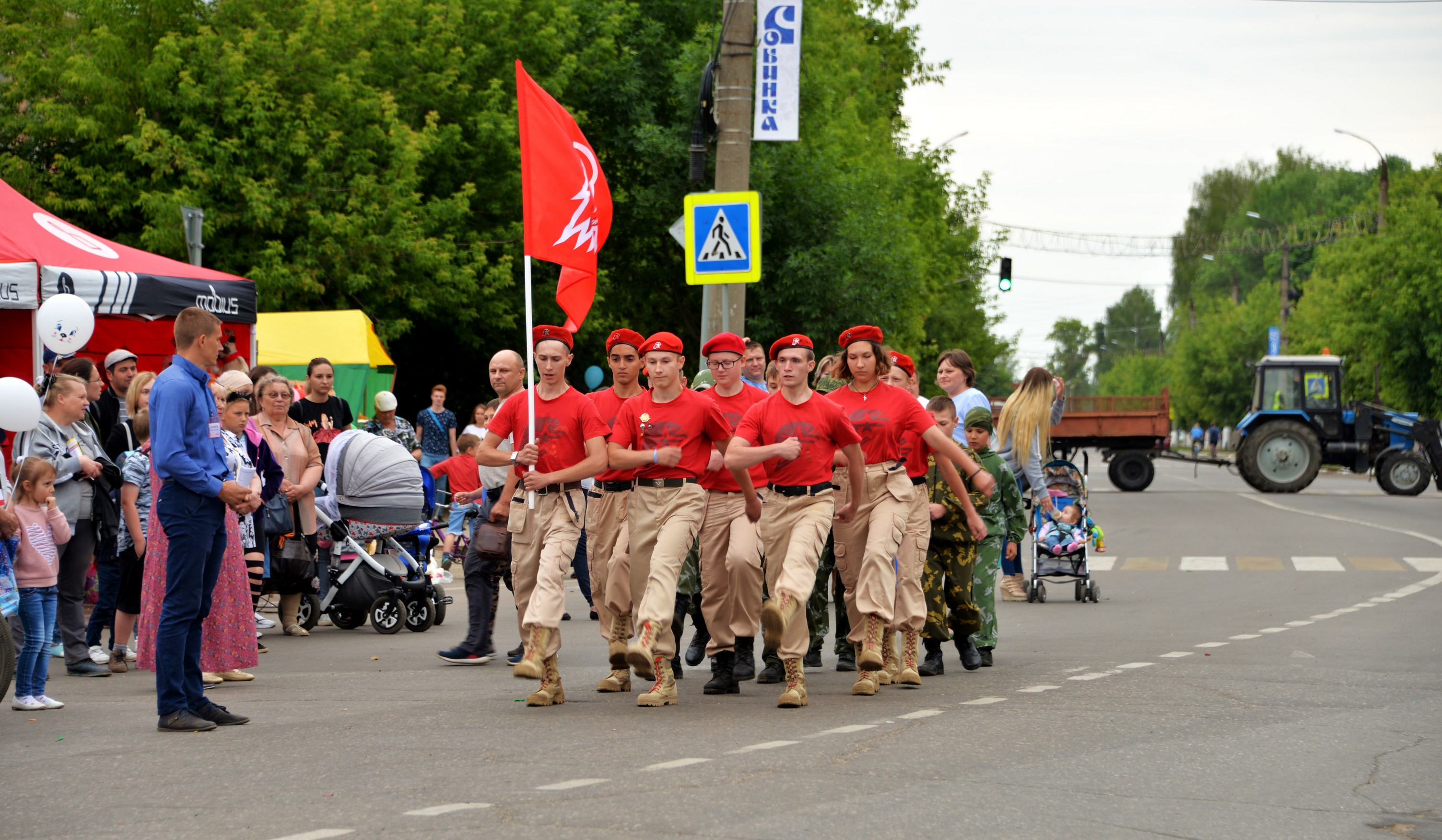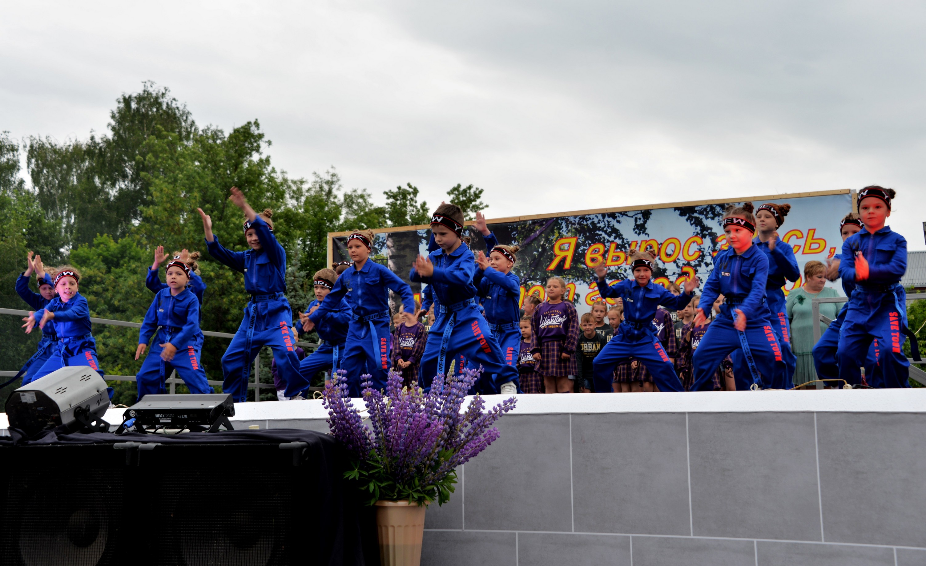 Всё это праздничное шествие перетекло в большой концерт на центральной площади. Открыли программу ярким флешмобом от воспитанников Дома культуры.