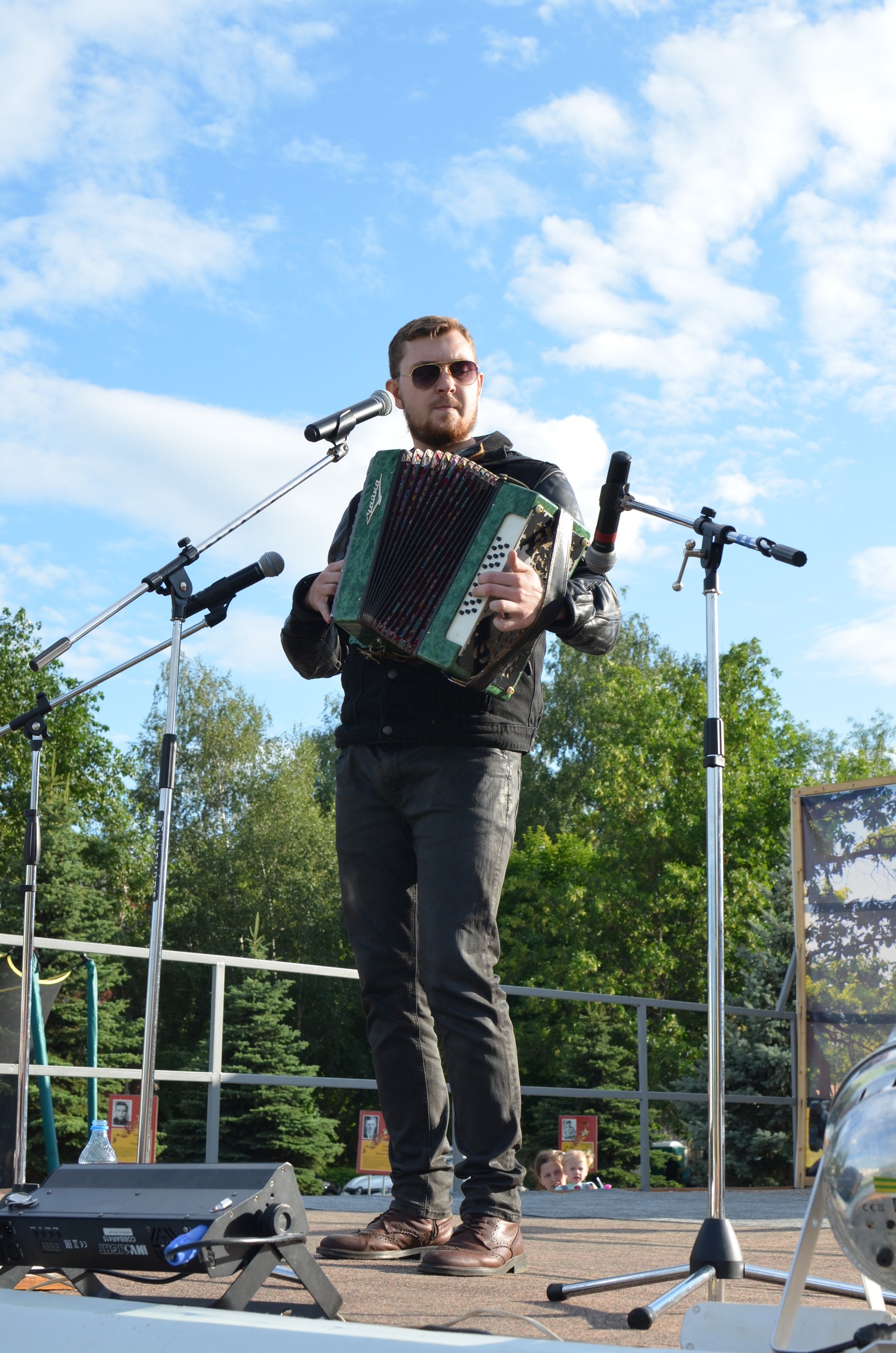 Далее все внимание было сосредоточено на главную сцену: один из байкеров взял в руки аккордеон и поздравил молодежь песнями.