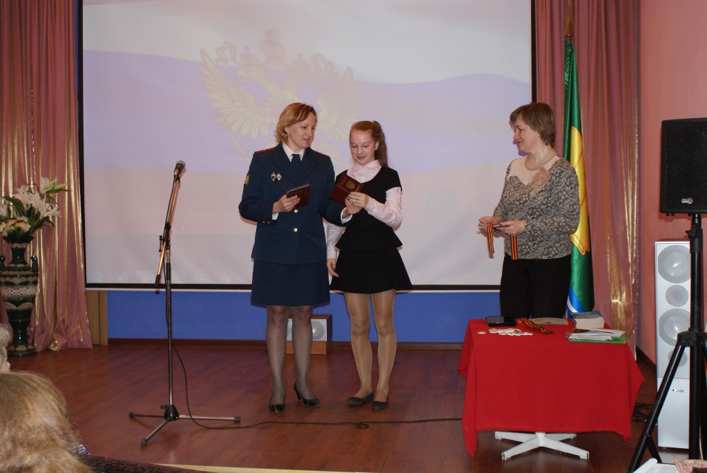 С этим важным днём ребят поздравили заместитель главы города Собинки по социальным вопросам Анна Александровна Единова, председатель районного и городского Совета ветеранов Дина Тимофеевна Агеева и консультант по социальным вопросам администрации города Елена Валентиновна Мизелёва. Вручала паспорта начальник отделения УФМС России по Владимирской области в Собинском районе Анна Юрьевна Козлова.
