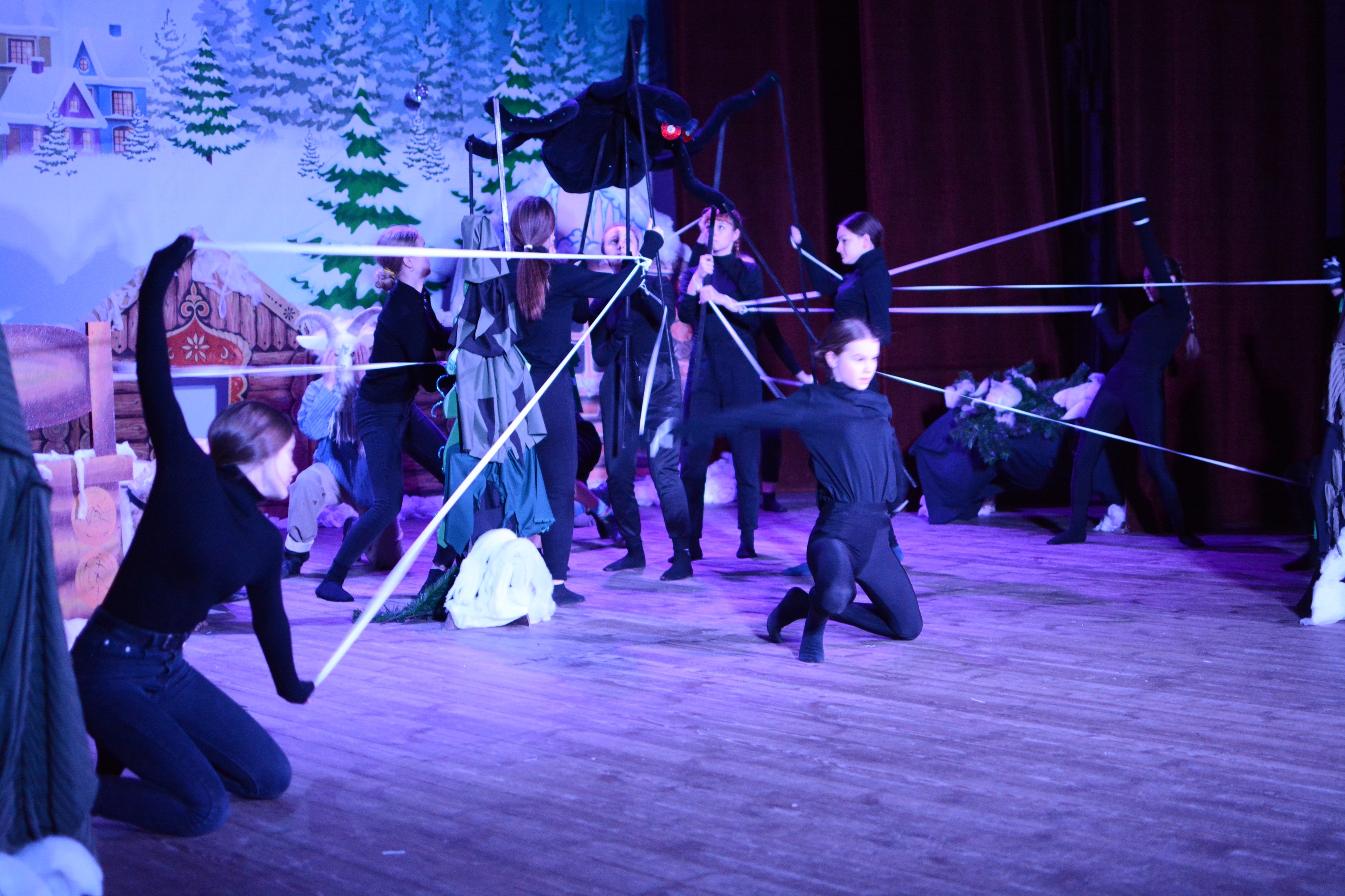 Наша детвора привыкла к тому, что каждый раз под Новый год их ждёт новая сказка. Так оно было всегда. Но вот одна выбилась из этих правил, потому что была написана сценаристом Галиной Суфьяновой на всякий случай. Но в этом году ей неслыханно повезло, её прочитала художественный руководитель ГДК Анна Захарова и взялась за постановку. Для воплощения своей идеи она пригласила руководителя Образцового танцевального коллектива «Эффект» Юлию Савельеву, которая в свою очередь предоставила своих воспитанников. И вот результат совместного труда – весёлое музыкальное представление с расширенным сюжетом, с добавлением героев из полюбившихся российских мультфильмов, песенных заставок и танцевальных номеров, спецэффектов и новых приёмов. Один только «оживший» паук чего стоит – зрелище не для слабонервных. За короткий срок проделана огромная режиссёрская работа. Поставленная цель: вдохнуть в сказку новую жизнь, создать современную интерпретацию и не умалить её изначальную целостность и сюжетную линию, была достигнута. Ребята, которых мы привыкли видеть в танце, на глазах превратились в настоящих актёров и это каждый раз подтверждалось активностью зала. Дебют оказался по - настоящему эффектный. Побольше таких постановок и тогда у детворы и молодёжи будет желание идти в наш Дом культуры.