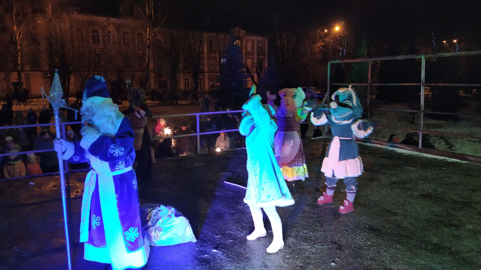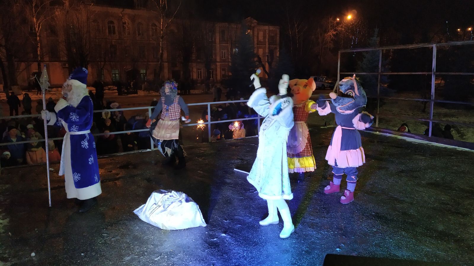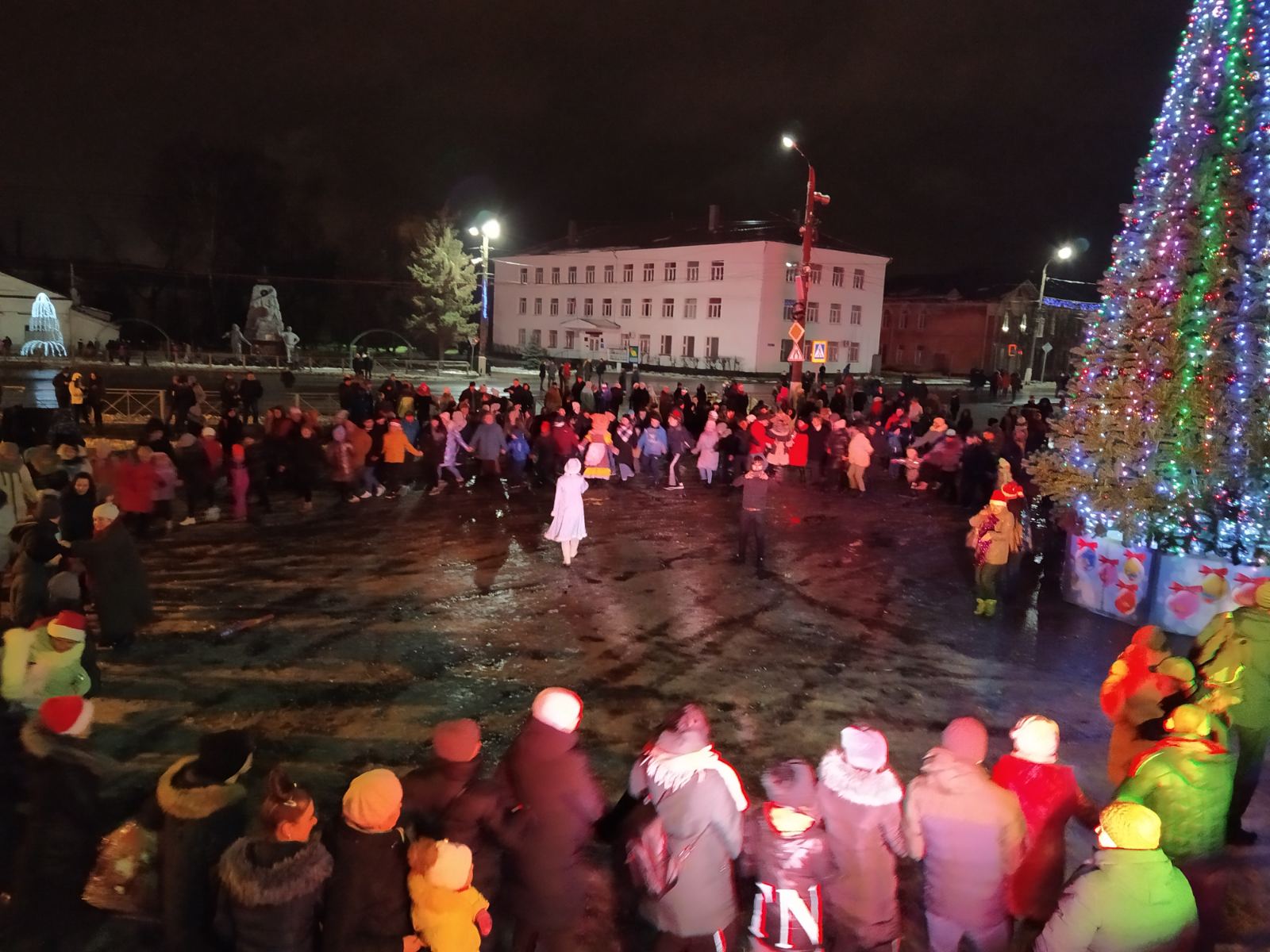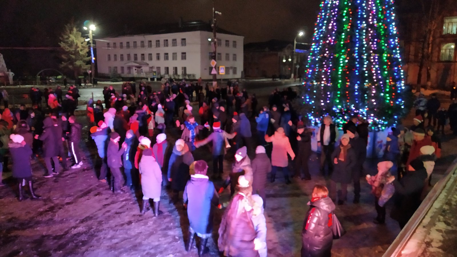 Рядом с елкой собирается гуляющий народ. А в домах горит свет, сегодня никто не ляжет рано спать. Все с нетерпением и трепетом ждут наступления Нового года и конечно встретить его, по традиции на центральной площади города. Всю ночь играет музыка, а ровно в 1 час 30 минут на сцене появились новогодние персонажи Баба Яга, символы уходящего года свинка и встречающего мышка. И конечно Дед Мороз и Снегурочка, которые поздравили с наступившим Новым 2020 годом всех жителей города Собинки, передали привет от главы Собинки Елены Геннадьевны Карповой. Музыка, песни, хороводы, игры, фейерверки, веселая дискотека все было для горожан в этот волшебный новогодний вечер.