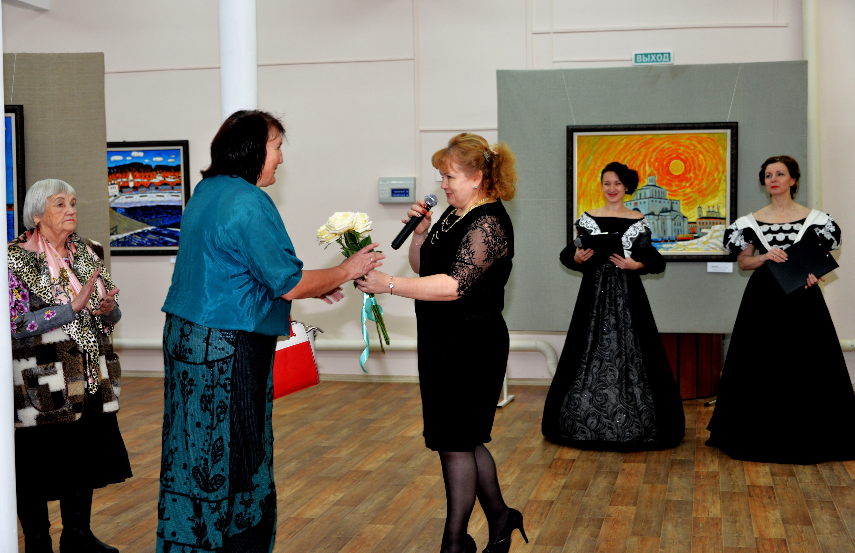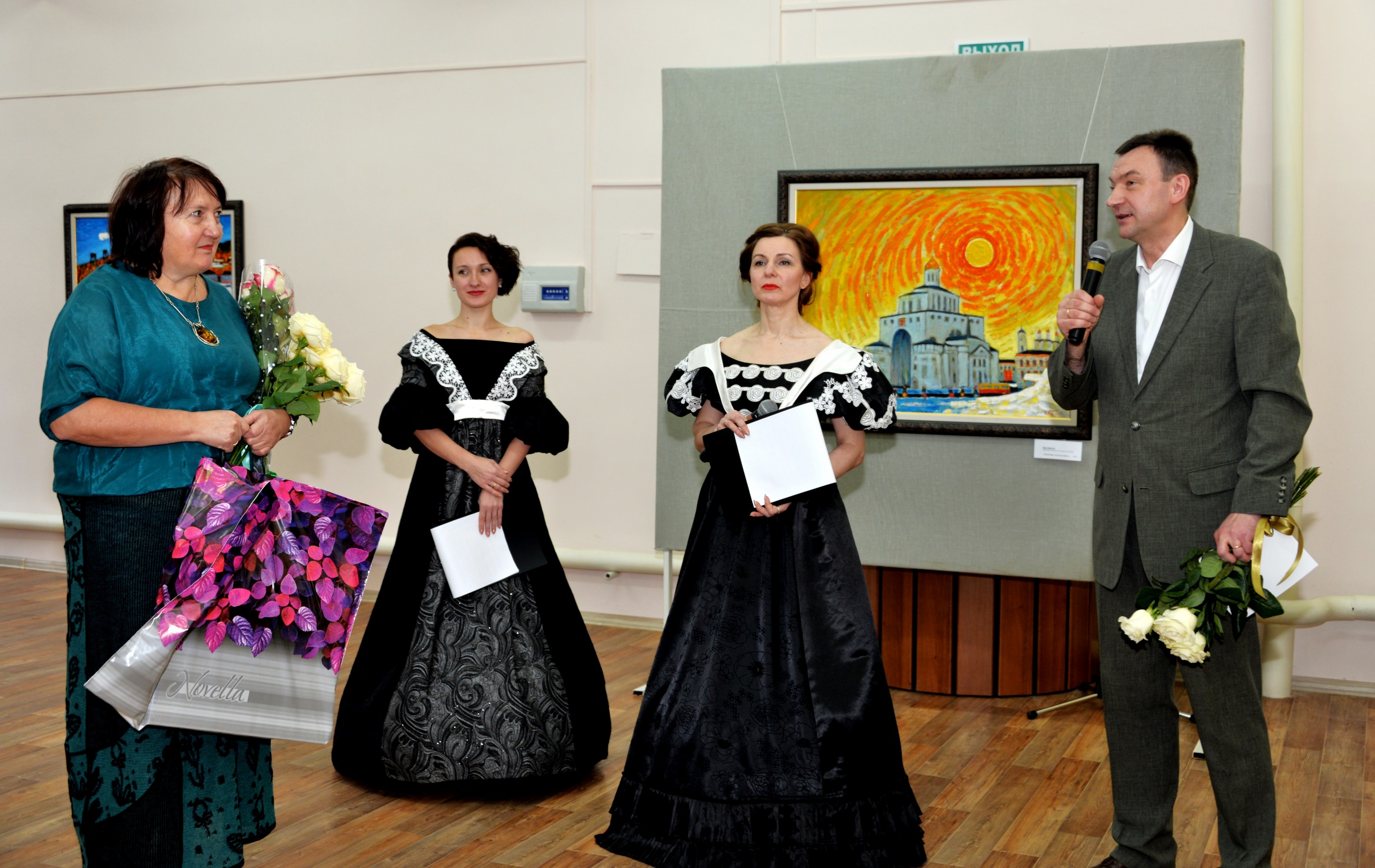 Минуты радости с собинцами разделили в этот вечер почетные гости из города Владимира – Холин Дмитрий Аркадьевич (председатель союза художников Владимирской области), Александров Андрей Васильевич (директор Центра пропаганды Изобразительного искусства), а также художники Собинского района.
