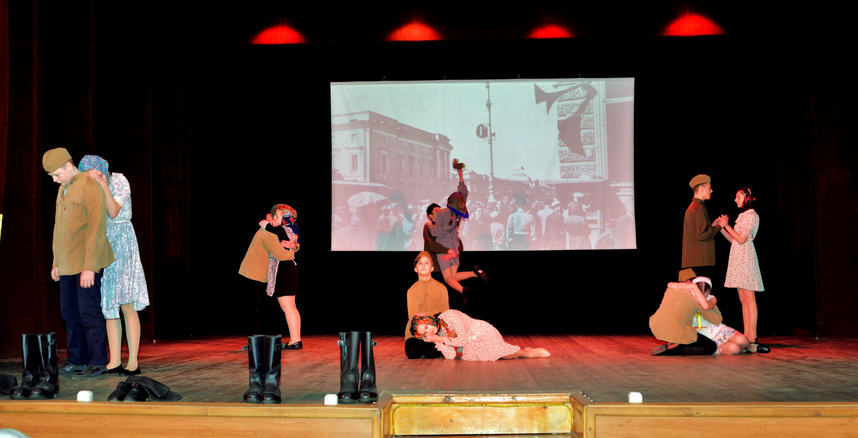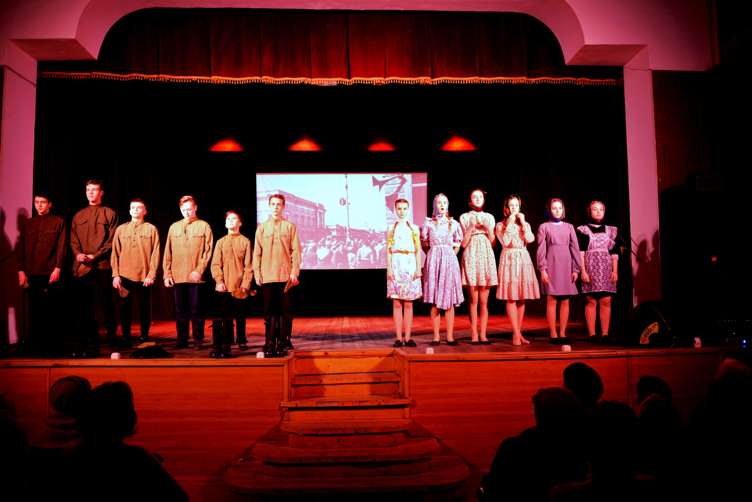 Церемония началась с театрализованной программы, подготовленной участниками танцевального коллектива "Эффект". История о том, как молодые люди уходили на фронт, оставляя дома своих близких, никого не оставила равнодушным.