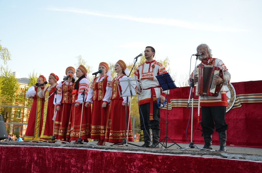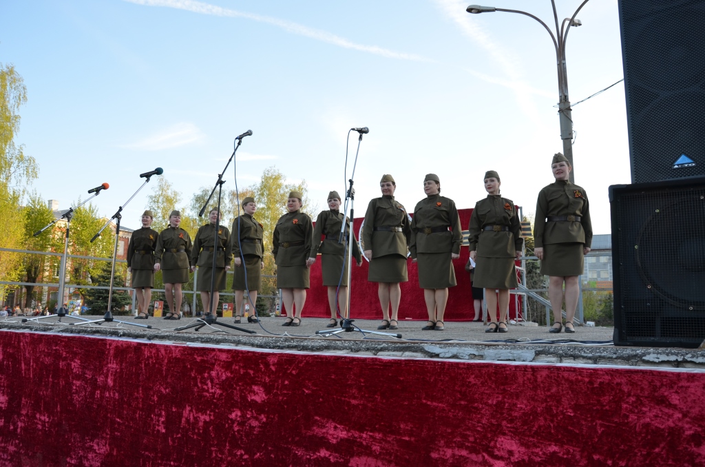 Собинцы и гости города имели возможность вместе с участниками художественной самодеятельности вспомнить и исполнить песни военных лет, и вместе с солистом Игорем Хребтовым все присутствующие пели песню «День Победы».
