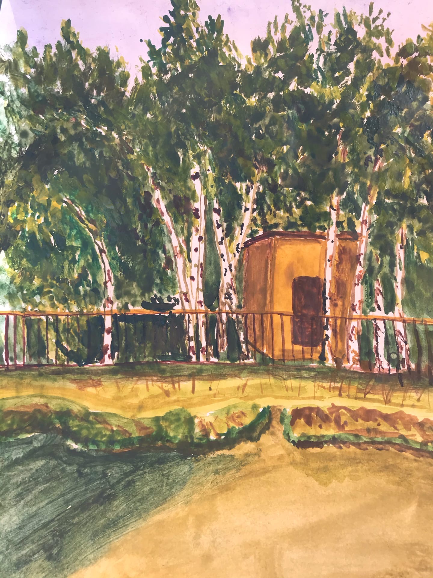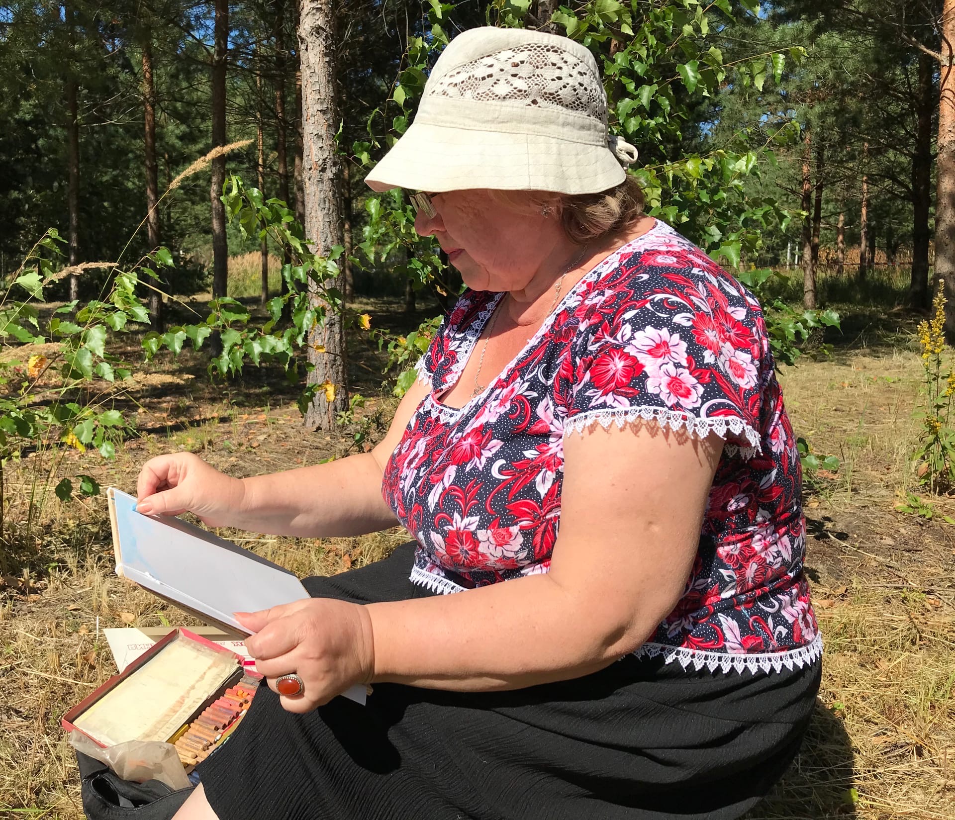 Первая часть пленэра была полностью отведена рабочему процессу. Художники достали альбомы, краски, пастель карандаши и каждый погрузился в свой мир восприятия, вдохновляясь окружающей красотой и свежим воздухом.