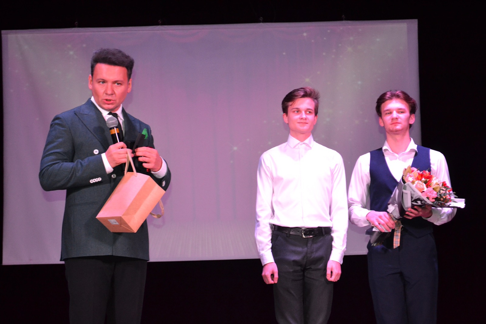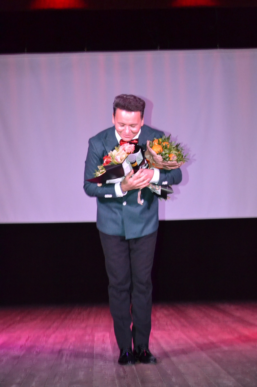 Директор Дома культуры Дмитрий Максимович Родин вручил артисту памятные подарки от главы города Елены Геннадьевны Карповой и народной умелицы Татьяны Валентиновны Поповой и выразил надежду на частые встречи на Собинской земле.