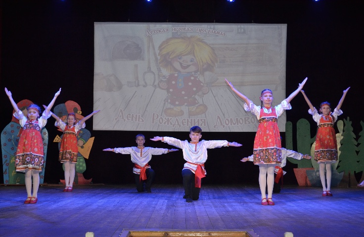 Сегодня домовёнок празднует свой день рождения. А в гости он пригласил ребят из детских садов и школ города. С танцами, песнями и играми прошёл этот замечательный праздник.