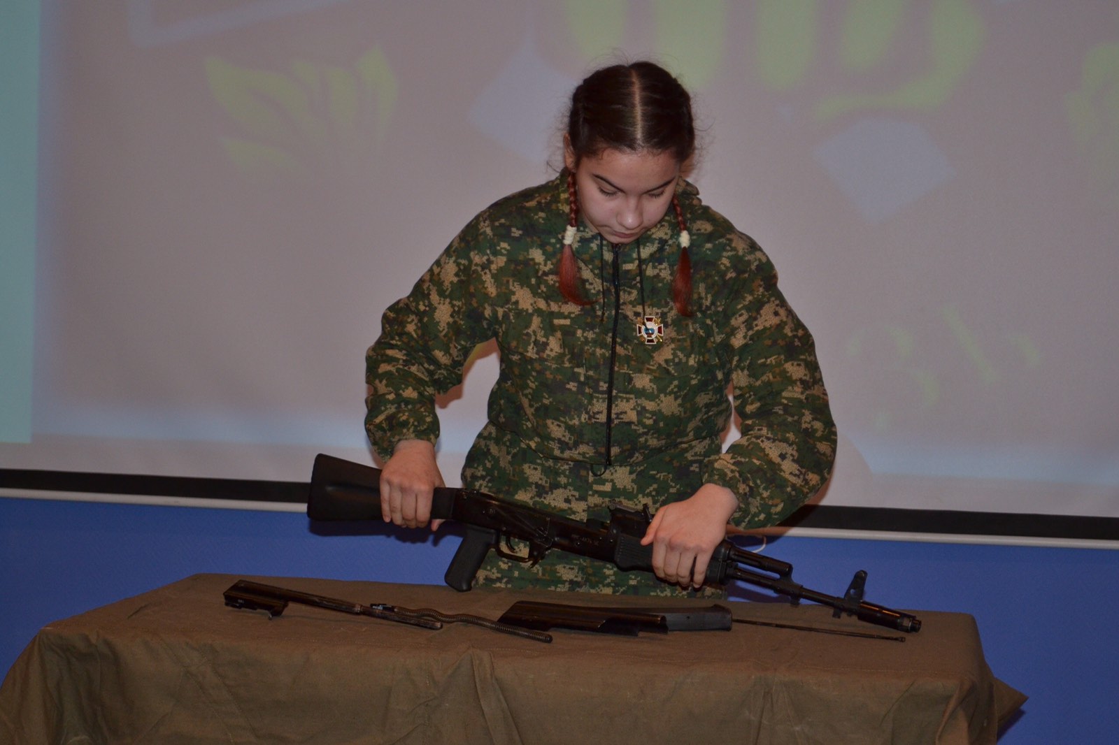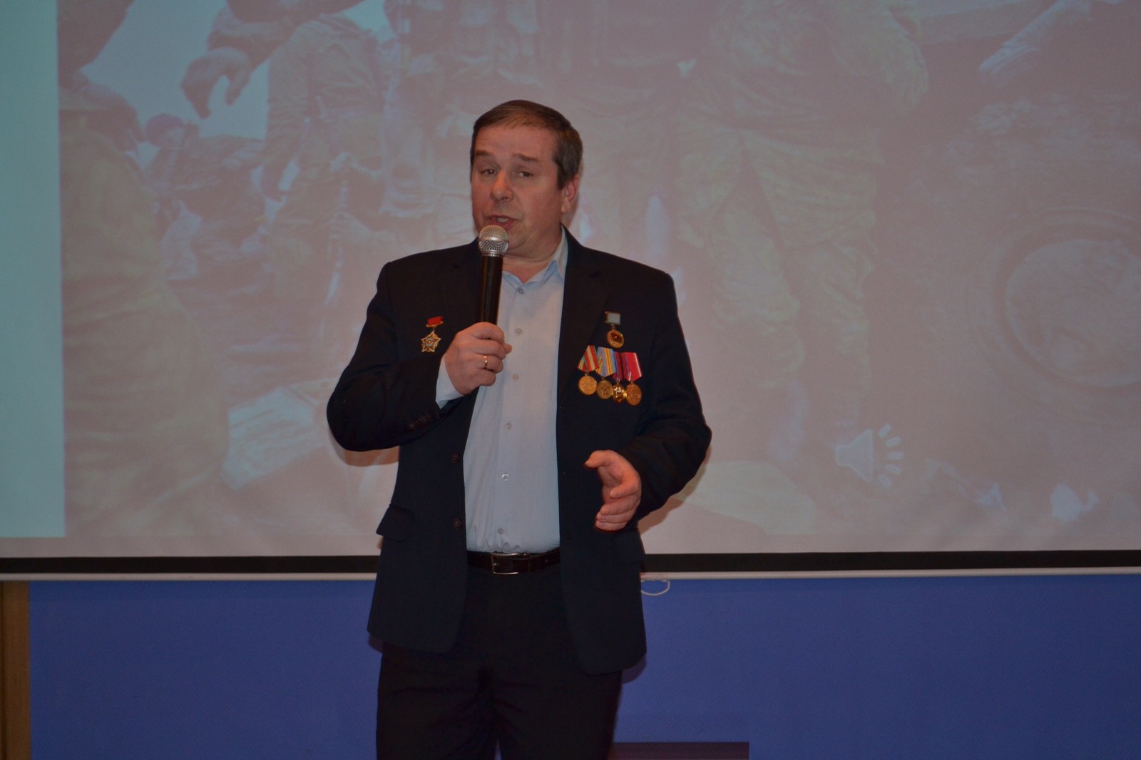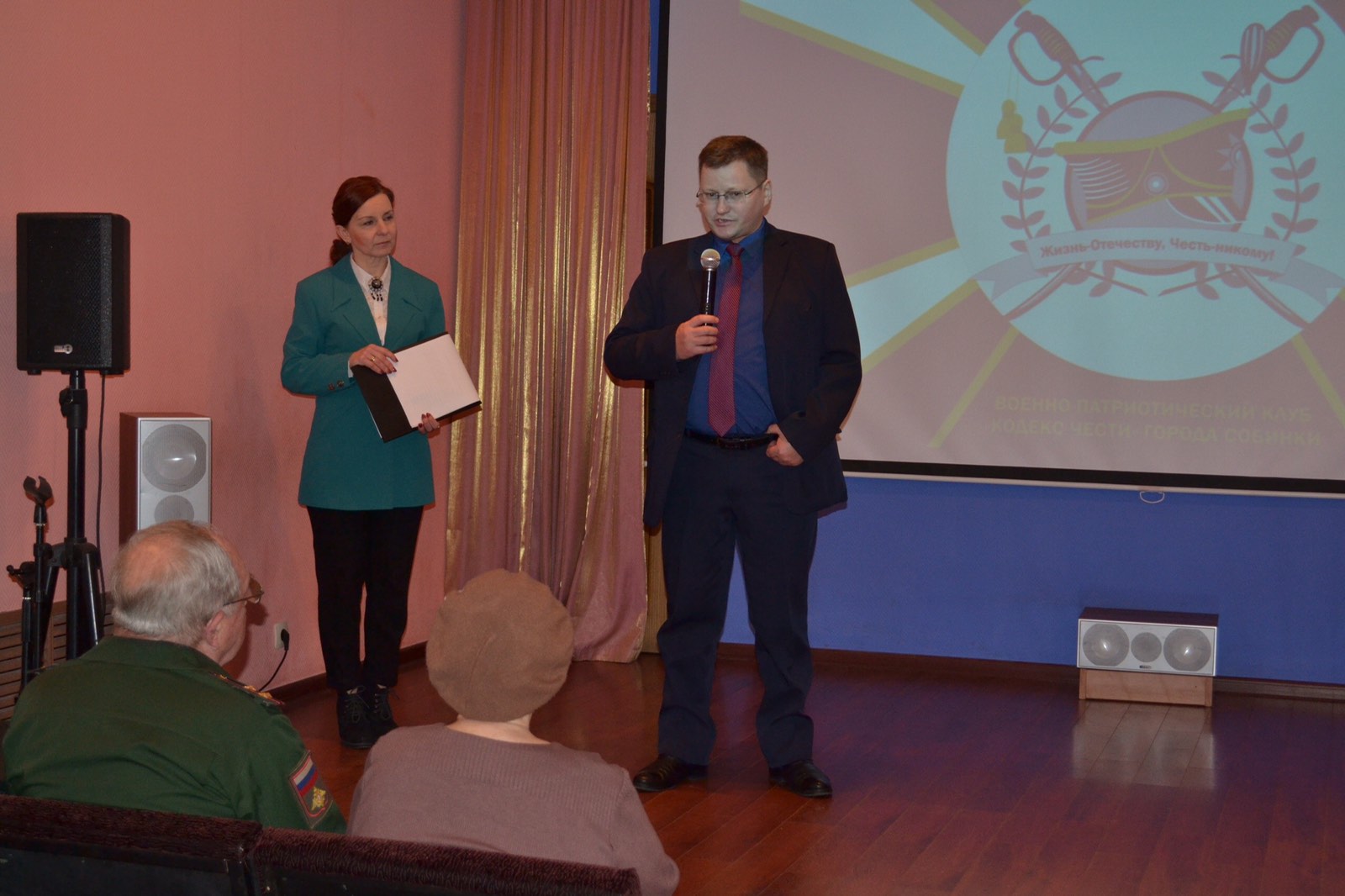 Именно воинам-защитникам было посвящено памятное мероприятие –вечер-встреча трёх поколений «Солдаты Отечества». Почётными гостями стали Александра Васильевна Порошина - представитель поколения, шагнувшего в Великую Отечественную войну в детские годы, Игорь Михайлович Хребтов - участник боевых действий в Афганистане, Виктор Михайлович Чурсин и Андрей Анатольевич Плетнёв - участники боевых действий в Чечне, Евгений Николаевич Терехов – военный комиссар города Собинки. Гордостью вечера стали представители современного поколения – воспитанники военно-патриотических клубов «Витязь» (руководитель Чурсин В.М.) и «Кодекс чести» (руководитель Плетнёв А.А.). Они продемонстрировали готовность к служению Отечеству, к выбору профессии военнослужащего.
