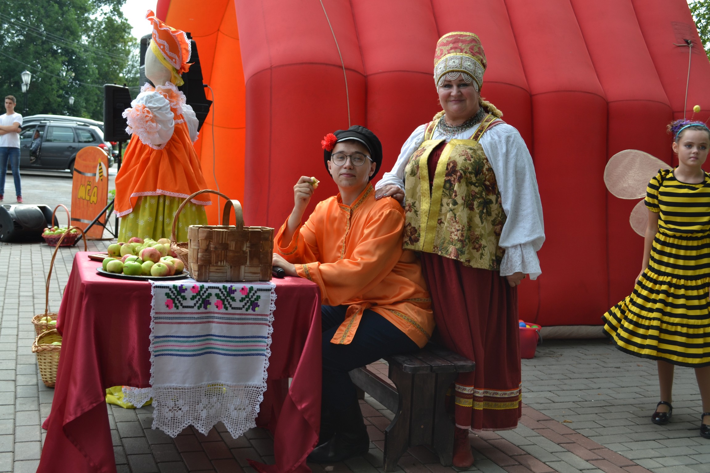 У каждого Спаса августа — своя история и даже свои праздничные угощения к столу. Именно этим традициям было посвящено театрализованное представление «Спасовки». А проходило оно в самом красивом месте нашего города – на Набережной реки Клязьма. Главные герои - Мудрая Алёна и Фёдор-балагур - задорно и доступно рассказали зрителям о том, что Медовый Спас получил такое название благодаря тому, что с этого дня пасечники начинали сбор меда нового года. Мёд освящали и угощали родных, друзей, соседей. Второй Спас – это праздник урожая. С этого дня начинался сбор зимних яблок. Первые сорванные плоды по традиции складывали в корзину и несли в храм для освящения. Затем из яблок готовили специальные постные блюда. В последний – Ореховый, или как его еще называли, Хлебный Спас пекли хлеба, используя муку нового урожая, собирали орехи про запас, для длительного хранения.