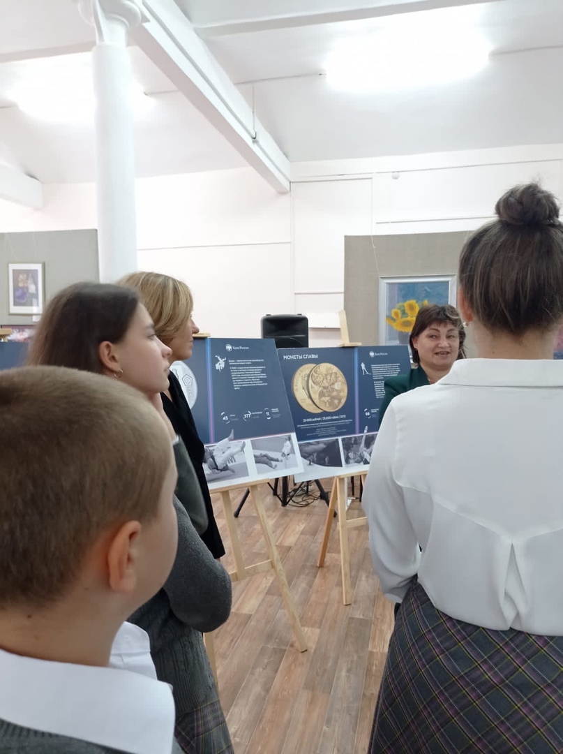 Двери выставочного зала открылись для старшеклассников школы № 4. Они стали участниками Олимпийского урока, проведённого на основе фотовыставки памятных монет Банка России. Памятные монеты передают динамику спортивной истории нашей страны, а помещенное на фотопанно увеличенное изображение монеты позволяет разглядеть все тонкости рисунка невооруженным глазом. Главная мысль олимпийского урока – сохранить историческую память о спортивном прошлом нашей страны.