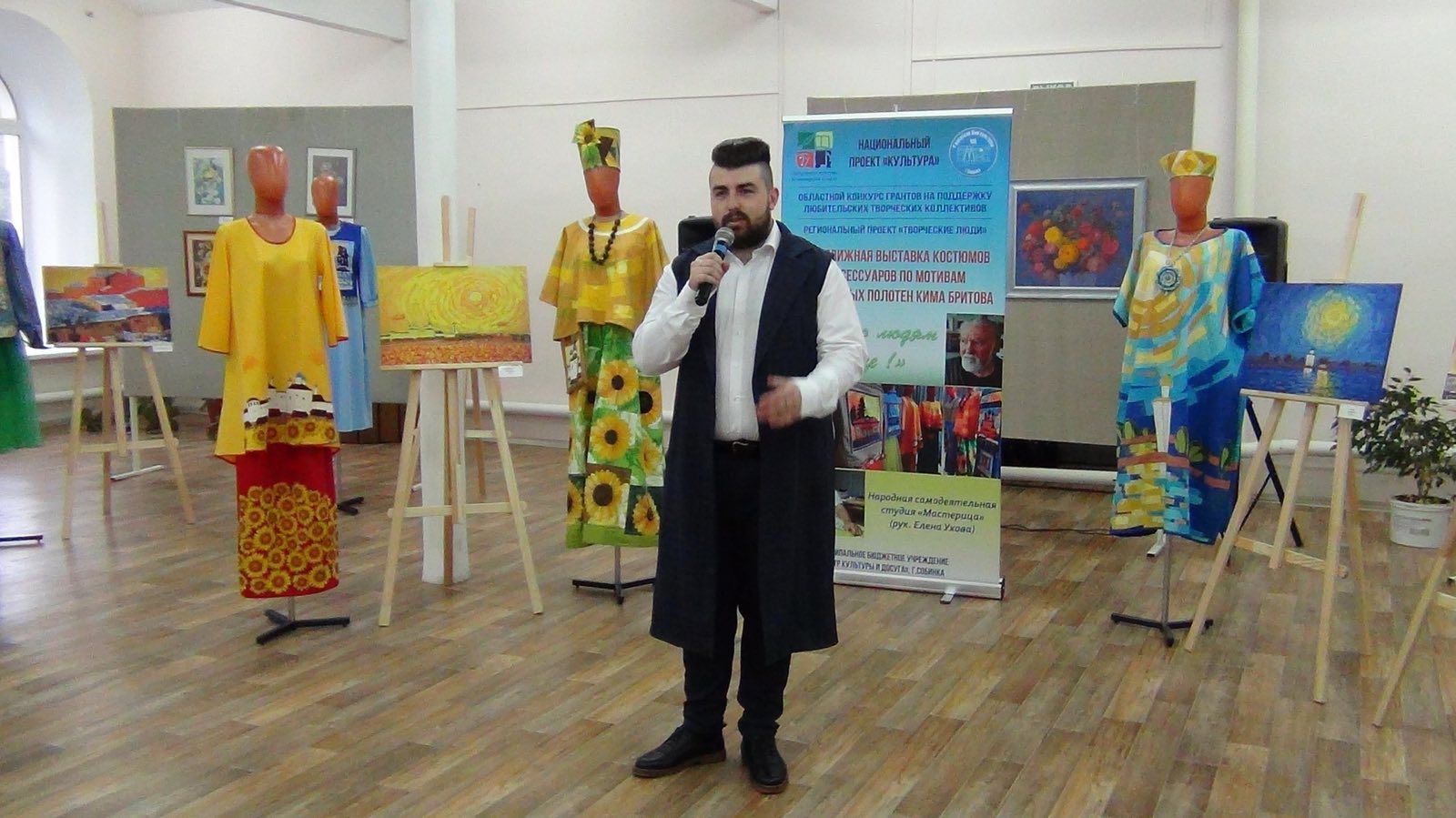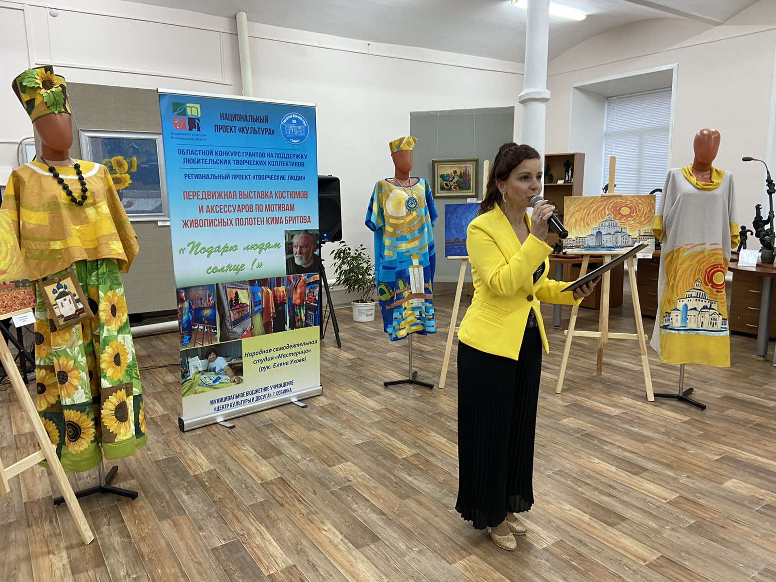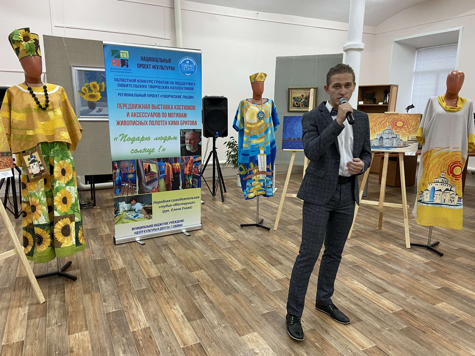 Cегодня, 22 сентября 2021 года, в выставочном зале Дома культуры прошла торжественная церемония открытия выставки коллекции костюмов по мотивам картин Кима Бритова «Подарю людям солнце!».
