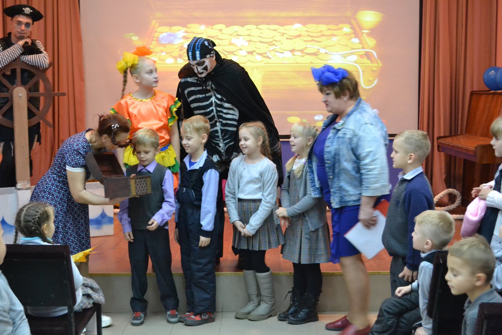 Ребятам помогли справиться с трудностями сказочные герои: Пеппидлинныйчулок, баба Яга, Кощей Бессмертный, пират и две очаровательные ведущие Хи и Ха. В торжественный момент праздника «Посвящение в первоклассники» юные ученики дали обещание стать полноправными членами школьной семьи, исправно ходить в школу, быть воспитанными, хорошо учиться, беречь школьные принадлежности. Дорога к знаниям открыта!
