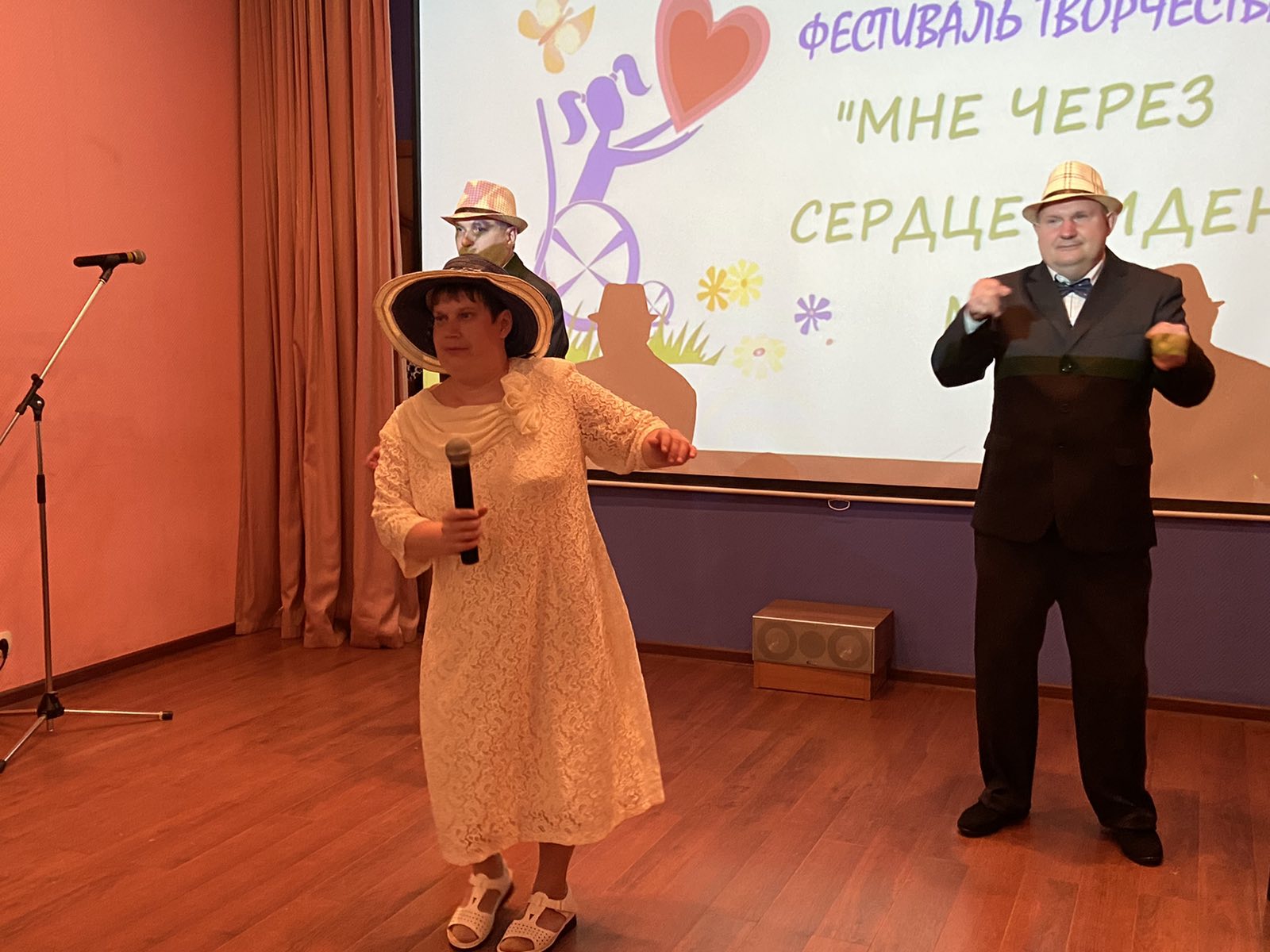 Первыми вышли на сцену проживающие Копнинского психоневрологического интерната. Далее - выступления Лакинского и Собинского интернатов, а выступления Арбузовского социального учреждения были заявлены в онлайн-формате.