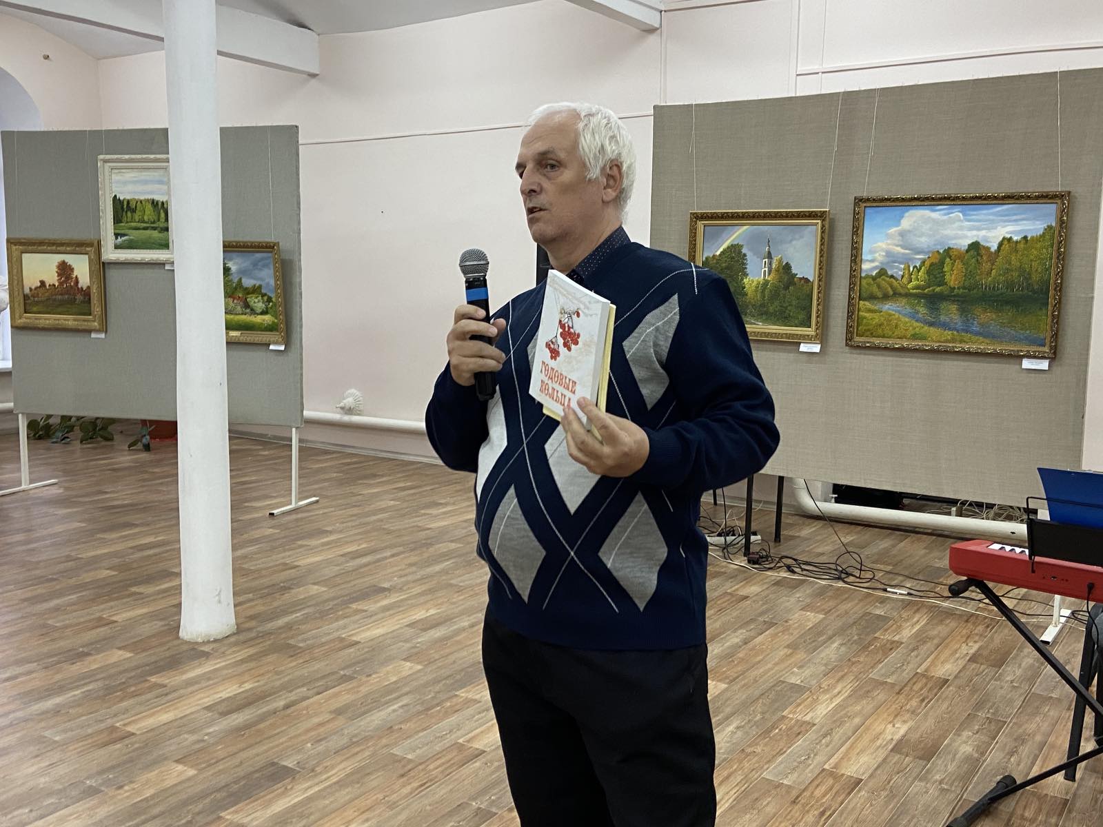 В этот замечательный праздничный день в выставочном зале собрались люди разных поколений и интересов, чтобы отвлечься от будничных мыслей, дать повод душе потрудиться, насладиться музыкой, живописью и поэзией. Перед ними развернулся яркий красочный калейдоскоп событий: встреча с юными создателями памятной открытки о нашем родном городе Собинка, презентация сборника стихов собинских поэтов «Годовые кольца», знакомство с творчеством самодеятельного художника Собинской земли Виктора Клопова… и калейдоскоп музыкальных зарисовок.