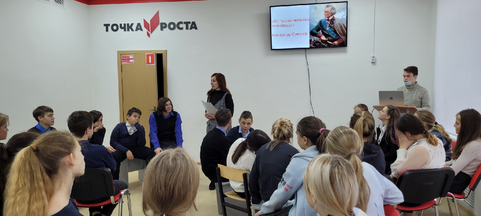 Продолжаются мероприятия, посвящённые Году науки и технологий, на территориях образовательных организаций города. На этот раз в центре «Точка роста» школы N2 методист Дома культуры Ирина Рудольфовна Табанюк провела интеллектуально-познавательную игру «По тропам полководца», посвящённую жизни и деятельности выдающегося земляка Александра Васильевича Суворова.