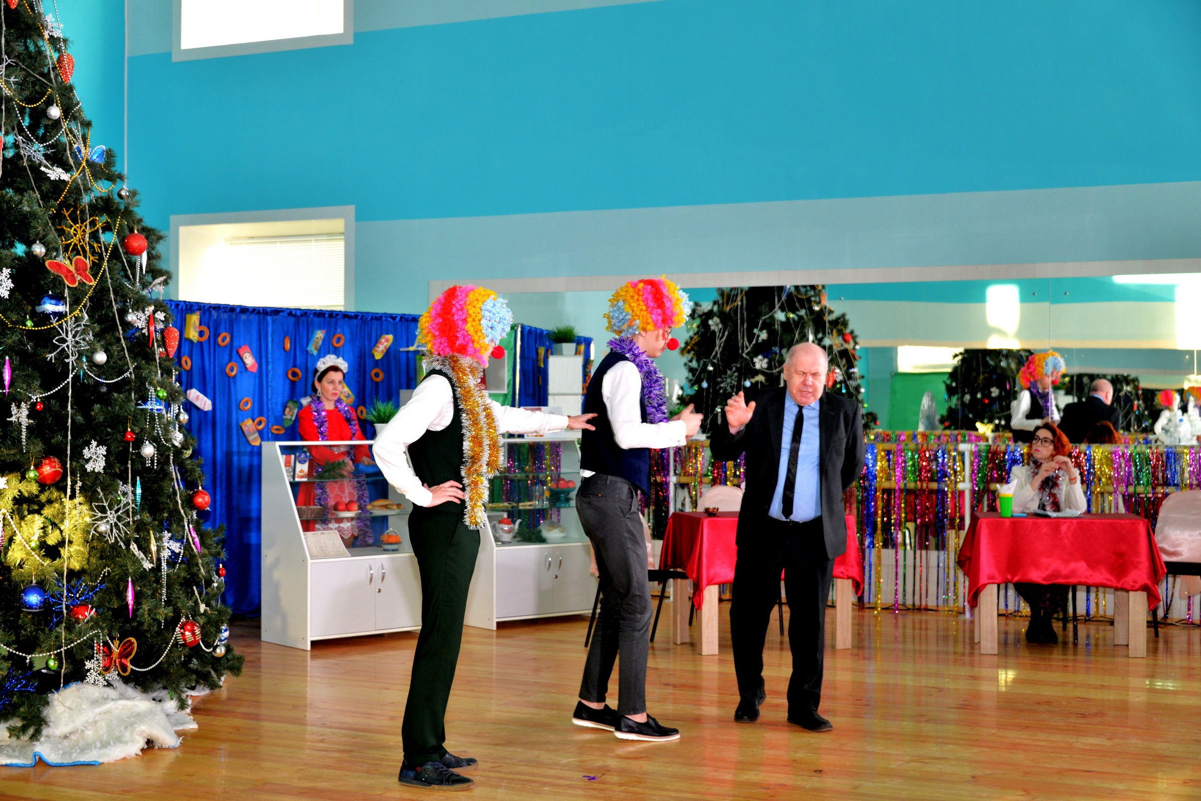 28, 29 декабря и 14 января в новом танцевальном зале прошел мюзикл «Карнавальная ночь» - история, случившаяся накануне новогодних праздников в нашем Доме культуры. Немного сюжета… Группа молодых работников клуба готовит новогодний костюмированный бал. Веселые активисты хотят сделать этот вечер незабываемым, они репетируют цирковые номера, сольные песни, танцы и выступление джазового оркестра. Но заместитель директора клуба Серафим Иванович Помидоркин, сам того не подозревая, может испортить ребятам и зрителям праздник своим видением на проведение этого мероприятия. Он предлагает стандартно-бюрократическую программу с выступлениями докладчиков и лектора-астронома. По его затее, вместо джазового оркестра и зажигательных танцев будет ансамбль песни и пляски. А сольных артистов заменит исполнение классической музыки. Однако молодые люди находят решение, как обхитрить скучного чиновника.