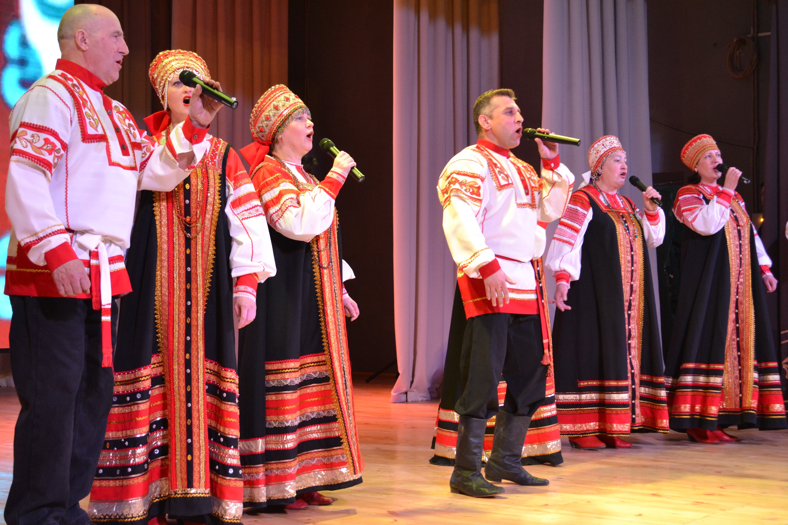 В фойе ДК зрителей встречала экспозиция военно-патриотического клуба «Кодекс чести», а также работала площадка по сбору товаров в помощь пострадавшим на Донбассе.