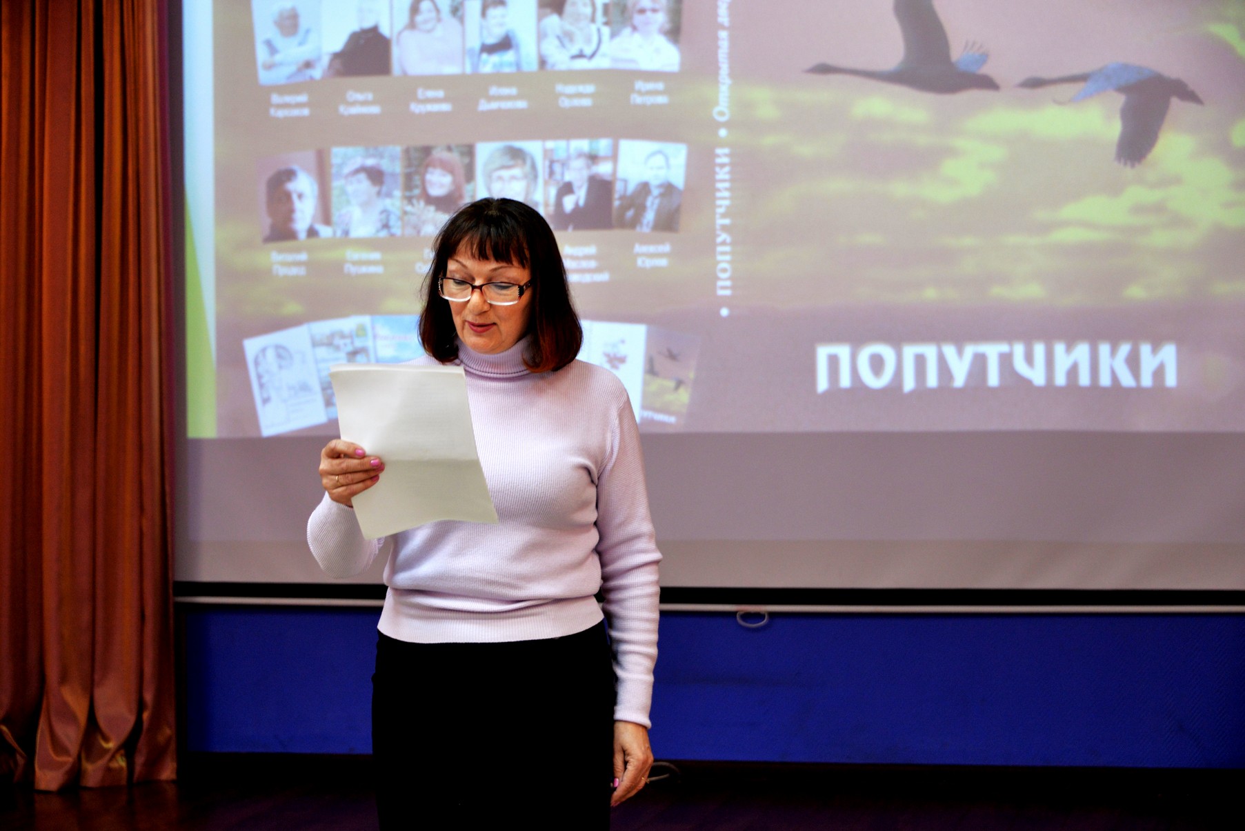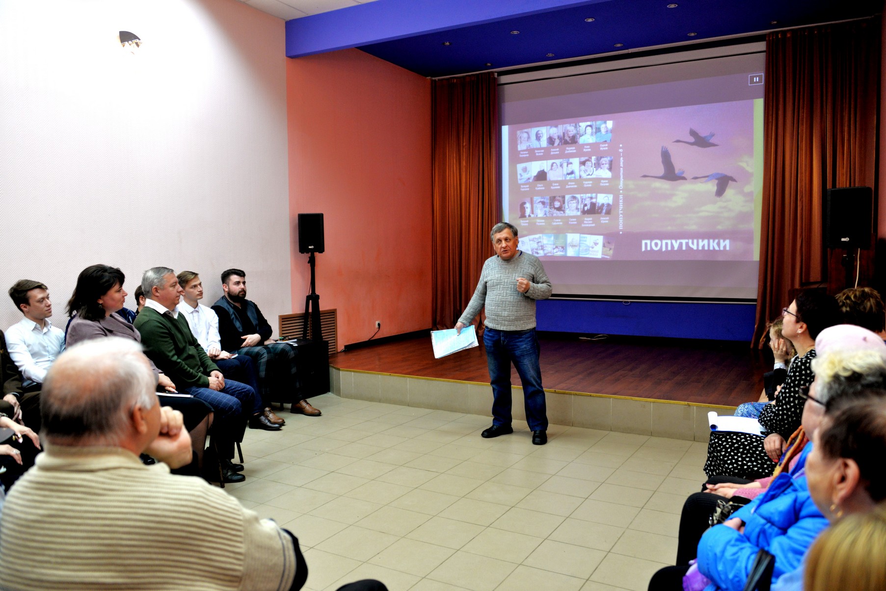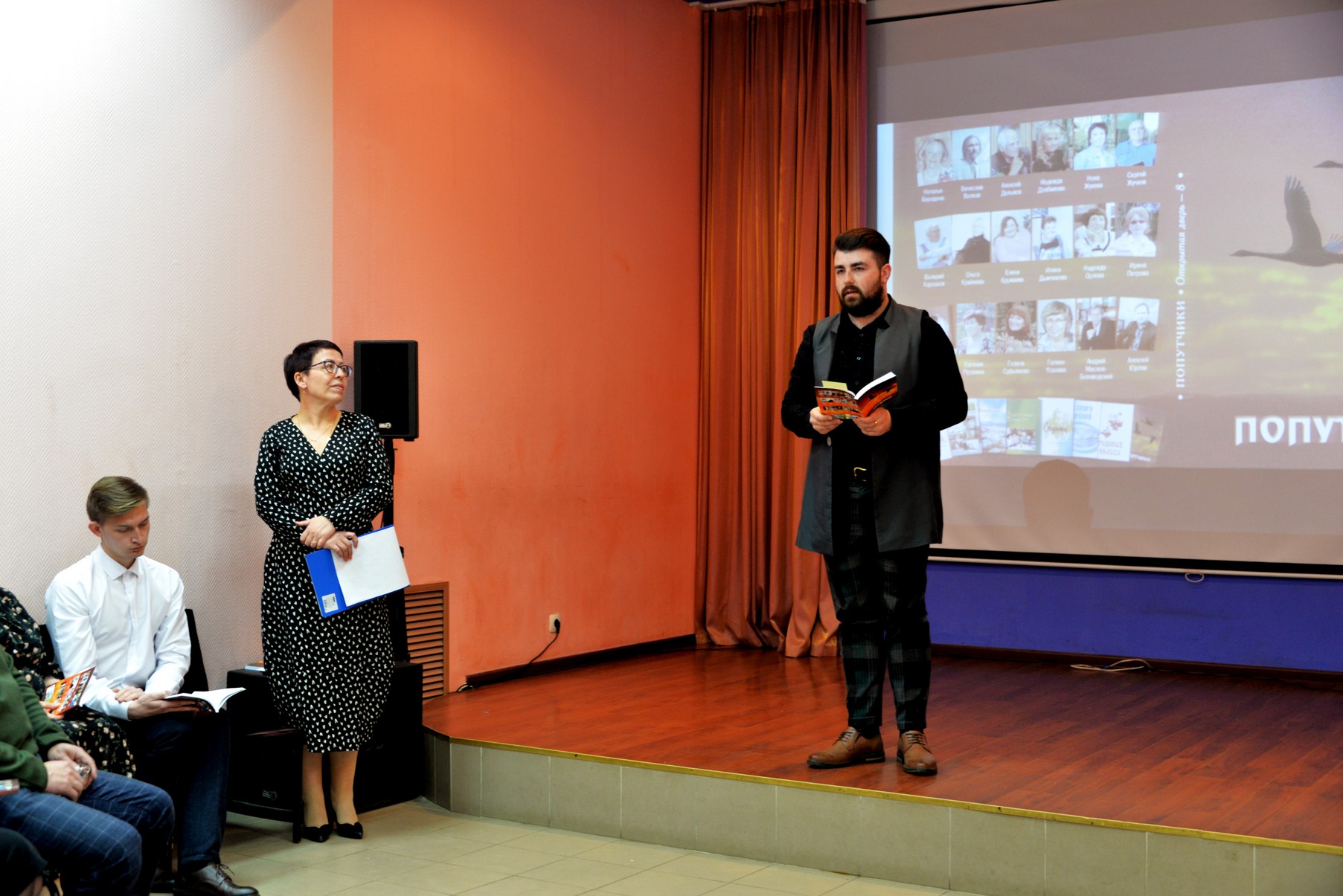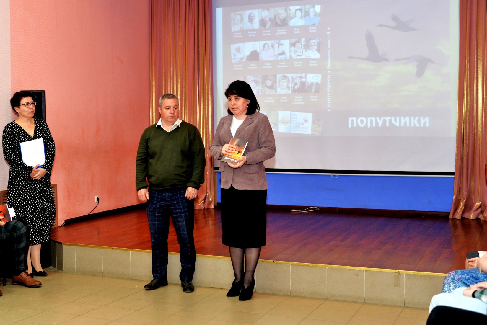 С поздравительным словом к гостям и поэтам обратились исполняющий обязанности Главы города Елена Николаевна Канайлова и представитель спонсора нового издания - Альберт Валерьевич Скачков. Директор Центра культуры и досуга Дмитрий Максимович Родин поздравил всех с выходом новой книги и прочитал стихотворение Алексея Юрлова о родном Доме культуры, которое вошло в сборник «Попутчики». Заслуженный работник культуры Тамара Сергеевна Тарасова отметила, что каждый новый сборник – это история родного края в стихах.