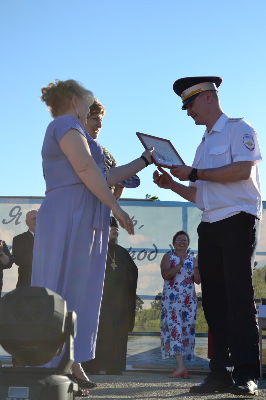 Официальная часть праздника – это выступления главных лиц города и важных гостей: Главы города Собинки Елены Карповой, временно исполняющего обязанности заместителя Губернатора Владимирской области Владимира Куимова, главы Собинского района Инессы Тишкиной, директора МКУ «Управление экономики, сельского хозяйства и природопользования» Елены Андреевой, председателя Совета народных депутатов города Собинки Константина Федорова, председателя городского совета ветеранов Тамары Тарасовой, Главы администрации МО Асерховское Светланы Захаровой, Благочинного приходов Собинского церковного округа, протоиерея Виктора Тарасов. Продолжением поздравительных речей в честь Дня России и Дня города стало торжественное награждение лучших жителей города Собинки областными и муниципальными наградами и вручение паспортов молодым гражданам Российской Федерации. Многолюдная площадь встречала каждого награждаемого аплодисментами.