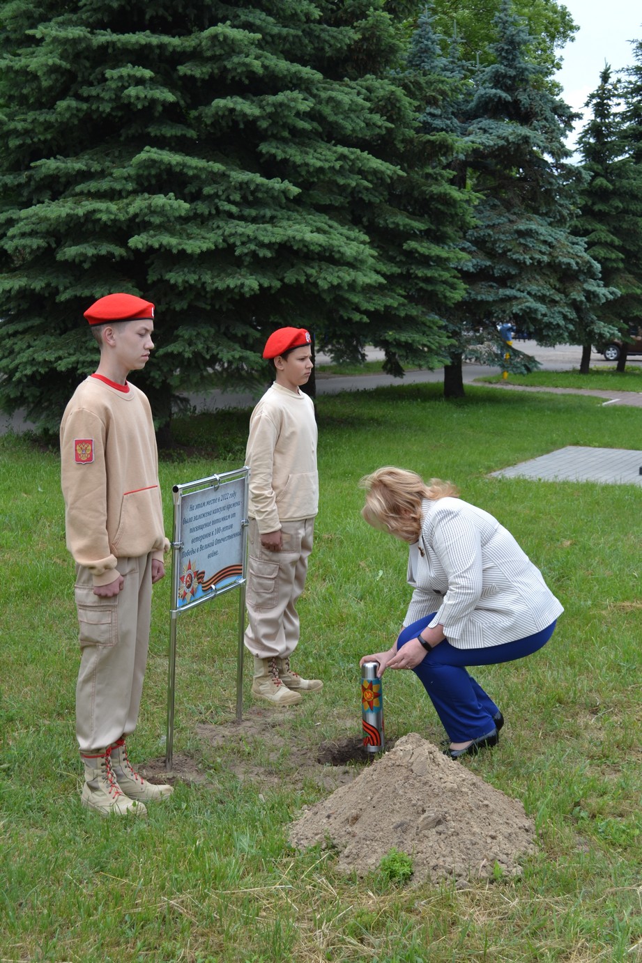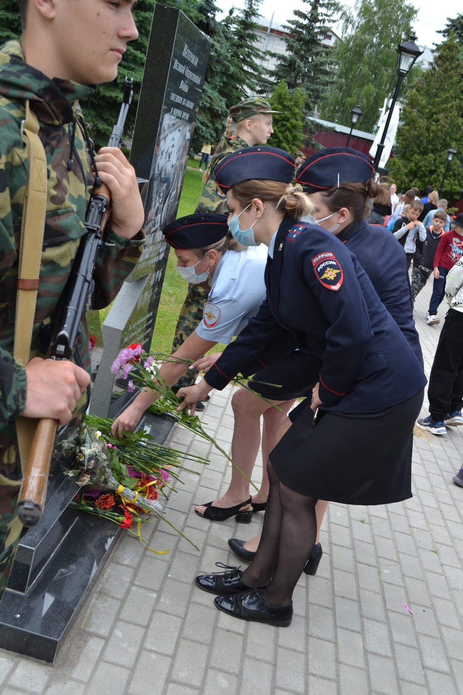 Участники митинга почтили память всех не вернувшихся с той страшной войны минутой молчания. Право заложить «Капсулу времени» (послание потомкам 2045 года к 100-летию Победы в Великой Отечественной войне) было предоставлено Главе города Елене Карповой и представителю молодого поколения, юнармейцу военно-патриотического клуба «Воин» Никите Клочкову. Завершился митинг возложением цветов к памятникам «Дети войны» и «Воинам, погибшим в послевоенное время».