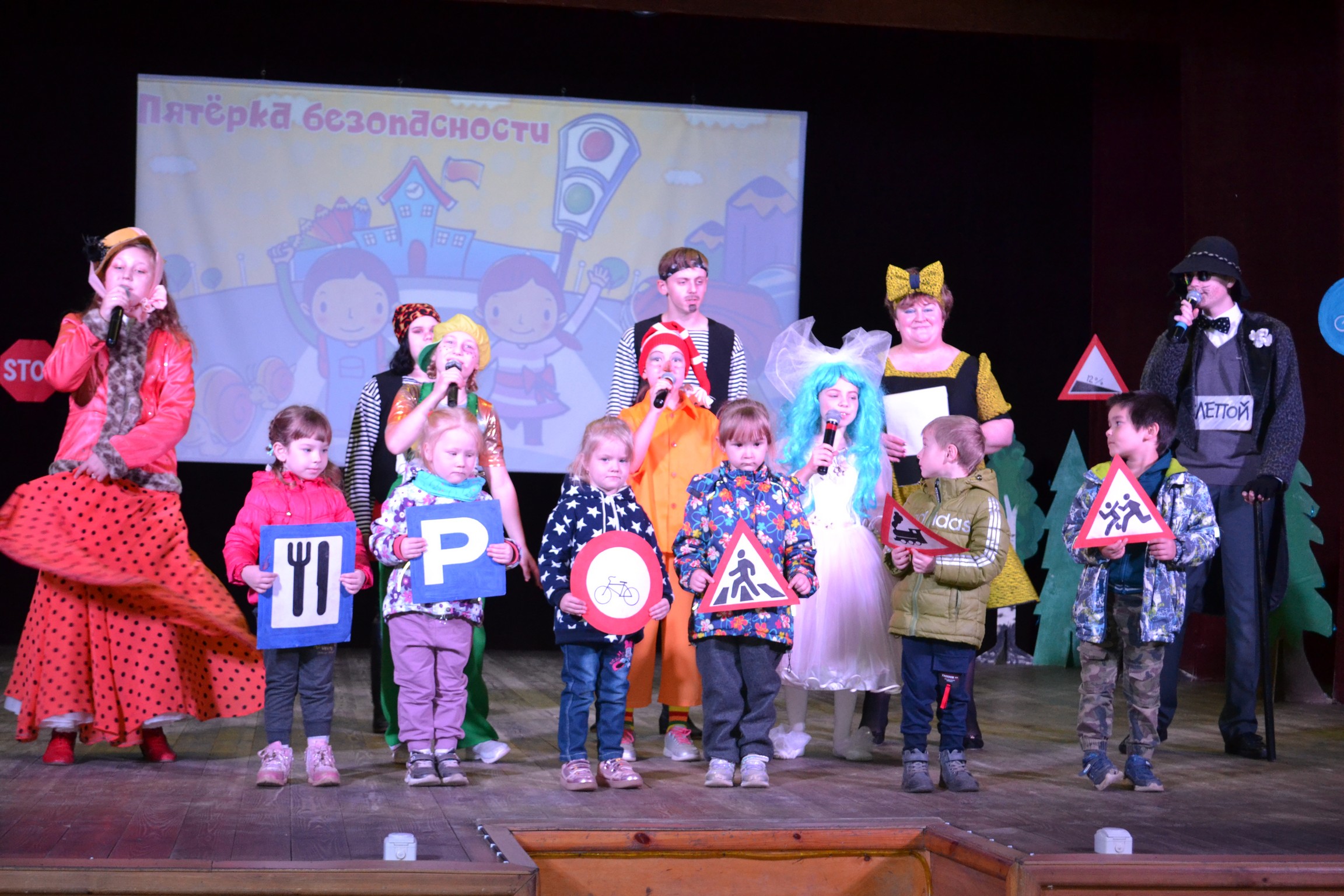Сегодня прошёл театрализованный праздник с познавательно-игровой программой «Пятёрка безопасности». В гости пришли ребята из школ и садов. Зачем? А чтобы в дневниках стало на ещё одну пятёрку больше.