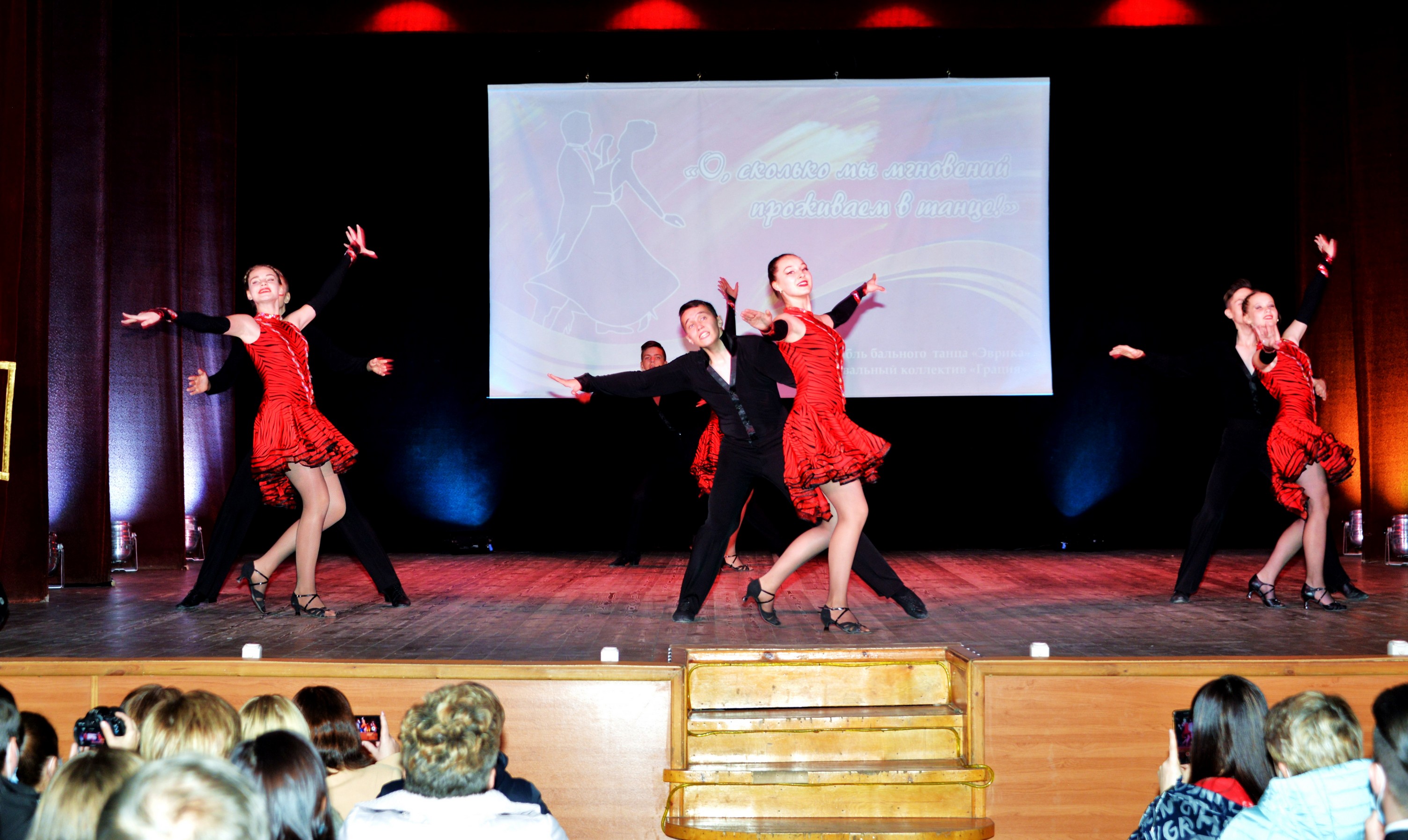 Слово «бал» пришло в русский язык из французского и происходит от латинского глагола ballare, который означает «танцевать». Танцевал в этот вечер «народный» ансамбль бального танца «Эврика» под руководством непревзойдённой Галины Григорьевны Маловой и молодой коллектив «Грация» (руководитель Софья Леонидовна Расторгуева). Отчетный концерт двух коллективов «О, сколько мы мгновений проживаем в танце!» стал праздником души, изящества и мастерства.